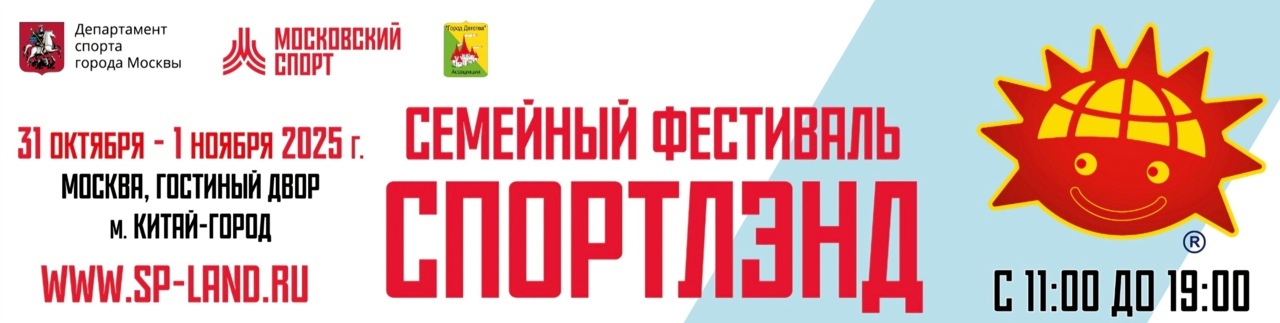 При поддержке Департамента спорта города Москвы 31.10.2025 и 01.11.2025 проводится крупный спортивный и культурный Семейный фестиваль «Спортлэнд».