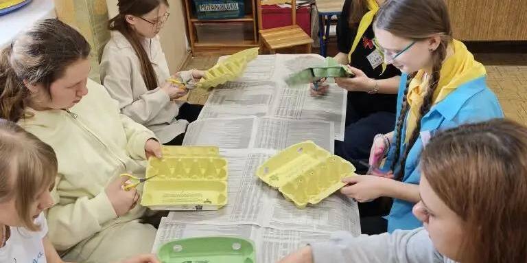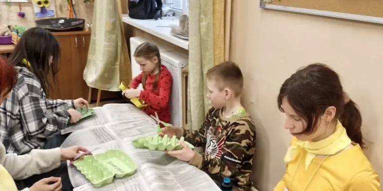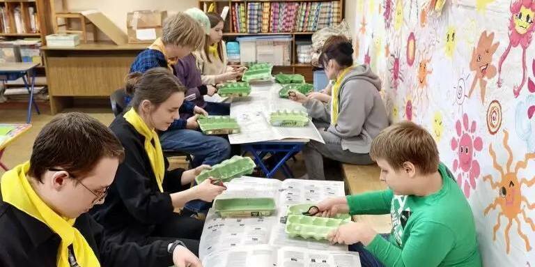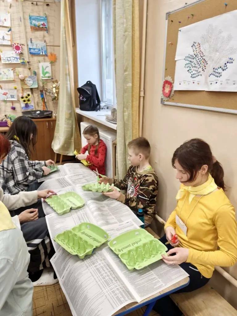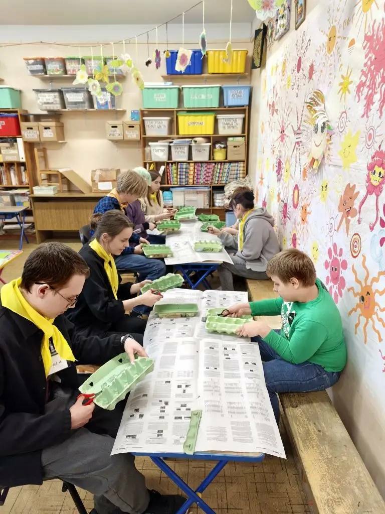 Дети и подростки приняли участие в творческом мастер-классе, где смастерили подставки для яиц на Пасху из яичных лотков!