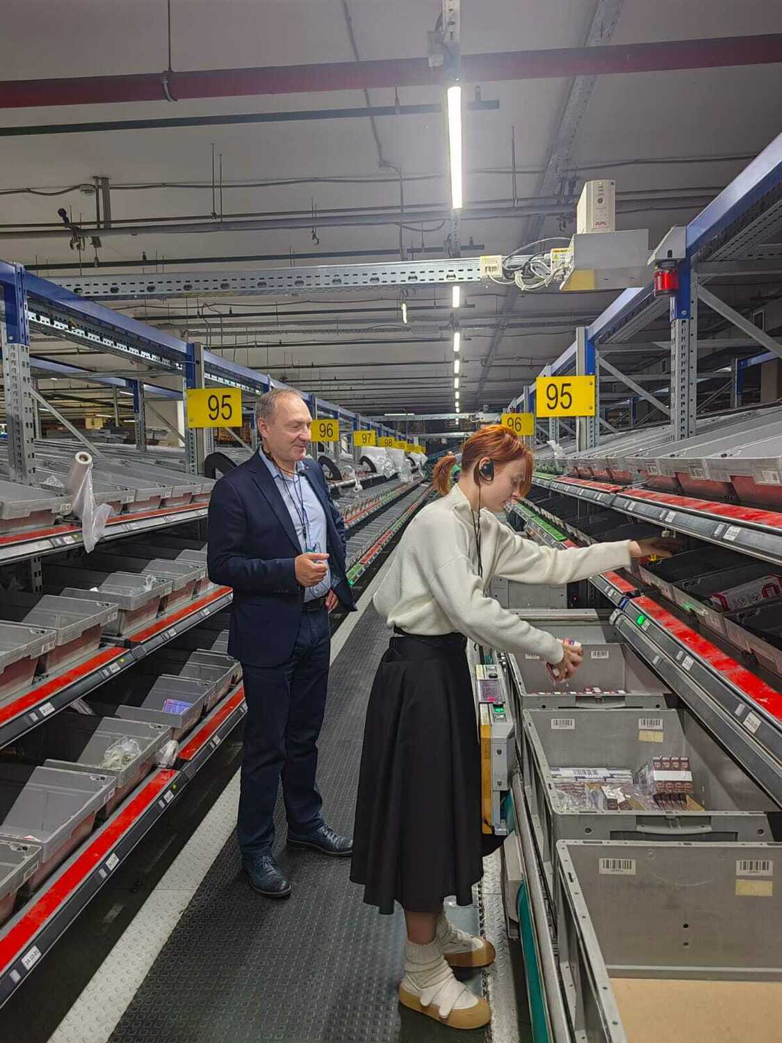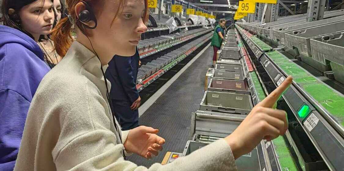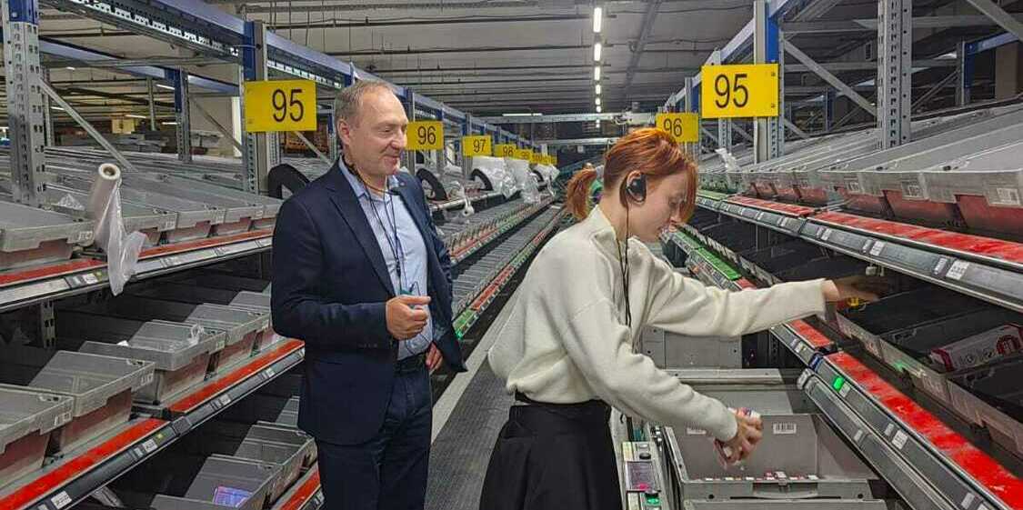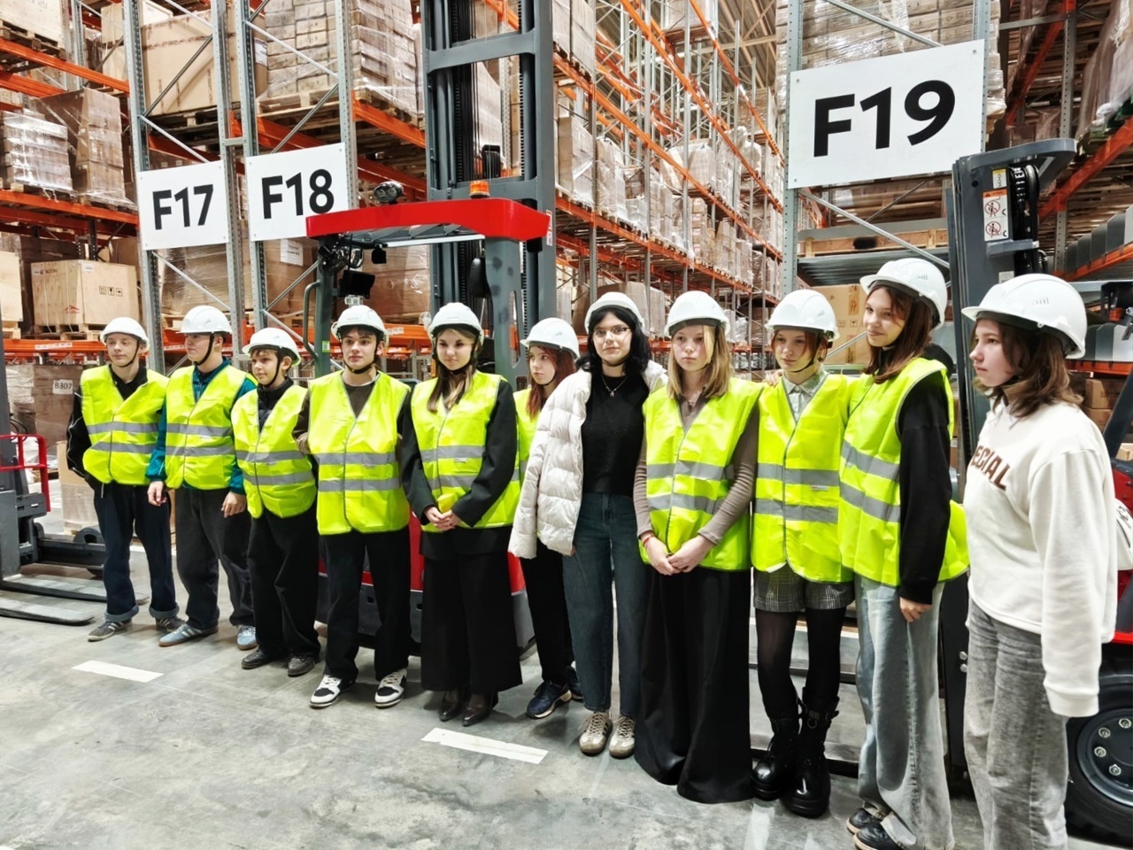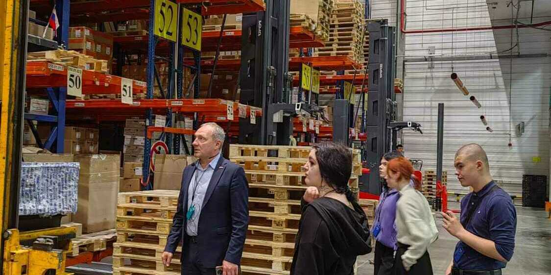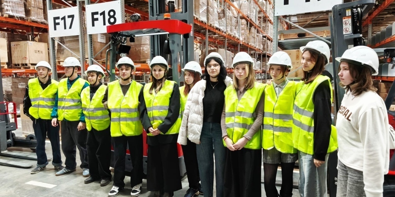Экскурсия началась с инструктажа по технике безопасности и изучения правил поведения на складе. После вводной части юных гостей провели по всему складскому комплексу, показали основные процессы: как принимается товар, попадает в базу и на стеллажи, а затем упаковывается, маркируется и отправляется в доставку.