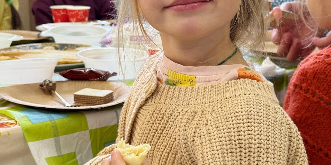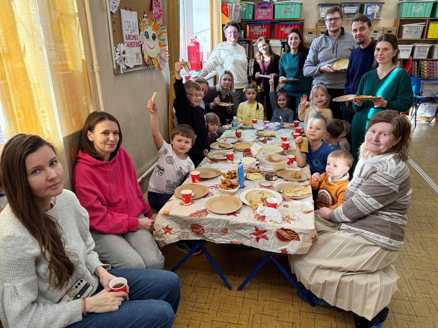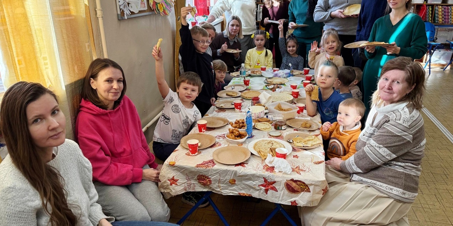 На занятиях семейного клуба «Малышок» праздновали Масленицу: родители вместе с детьми играли, веселились, пели, танцевали, мастерили и ели блины!
