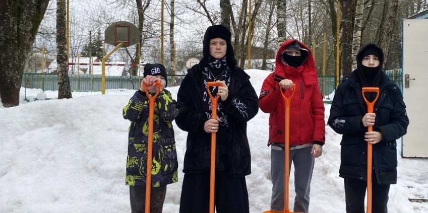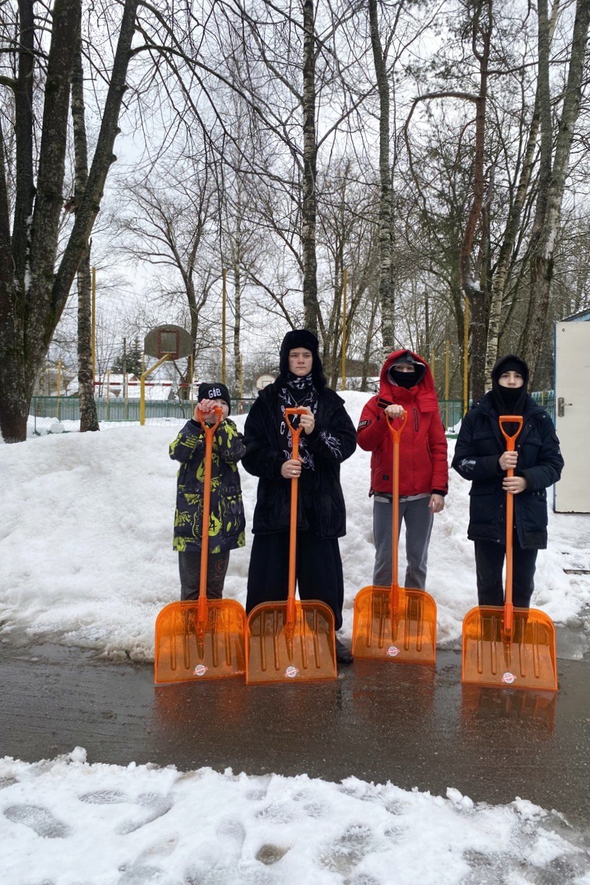 Зима закончилась, но лишь на календаре – снег не отступает. Мальчики активно помогают расчищать дорожки на территории центра в Правдинском, проявляя командный дух и заботу об учреждении.