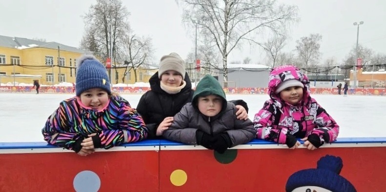 Катание на коньках – одно из самых излюбленных зимних развлечений. Кто-то из ребят впервые встал на коньки, остальные поддерживали и помогали.