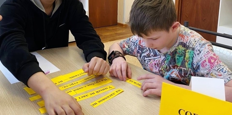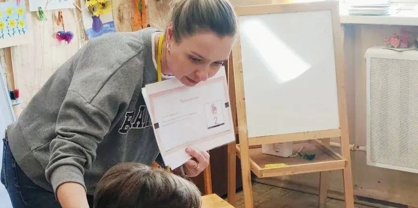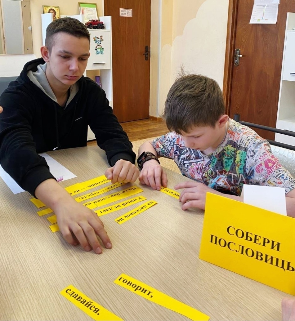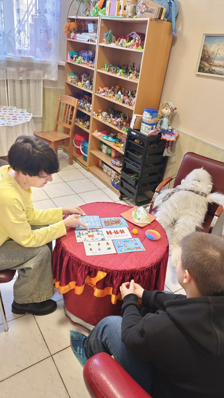На прошедших занятиях с логопедом воспитанники стационара семейного центра: