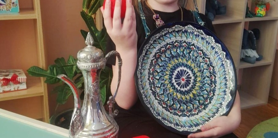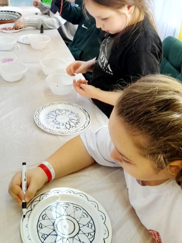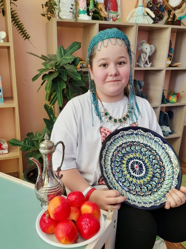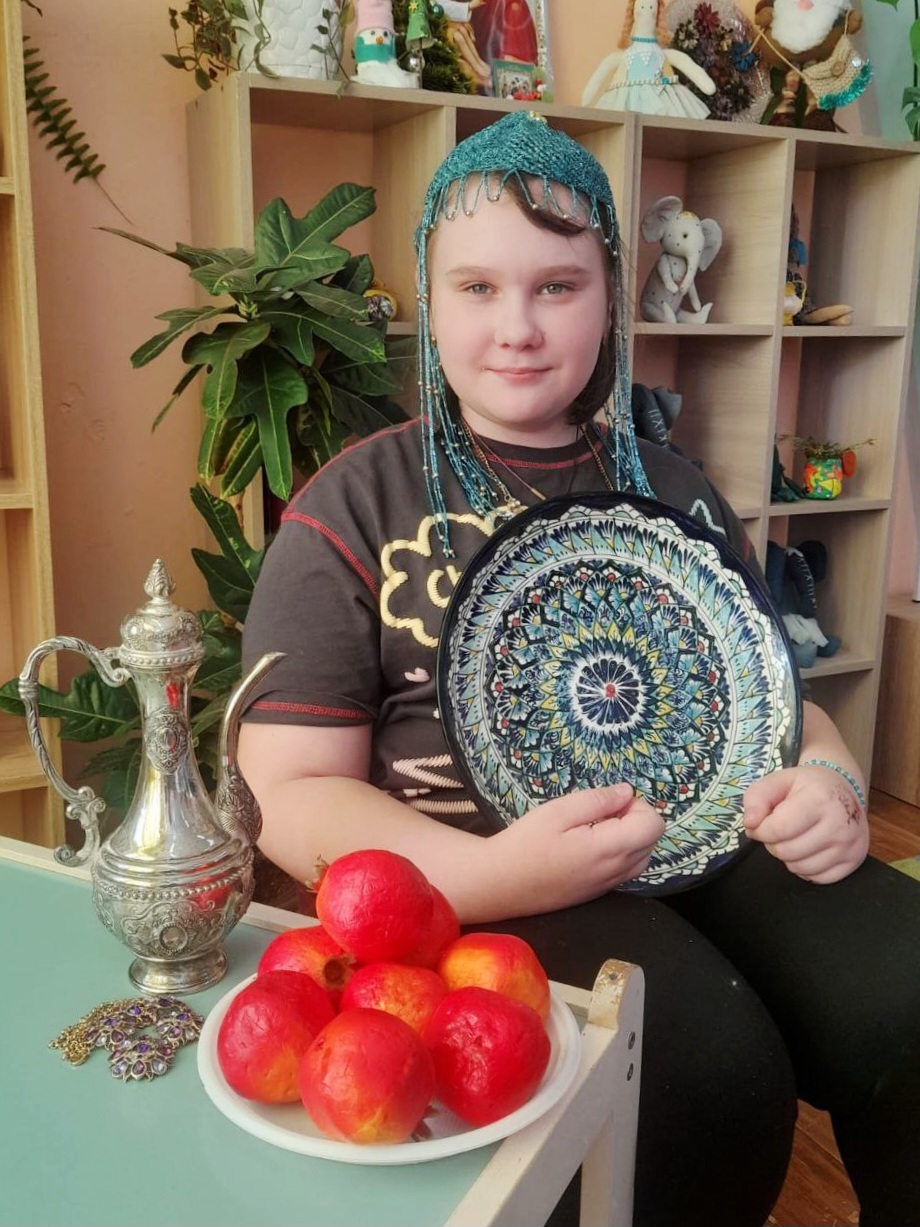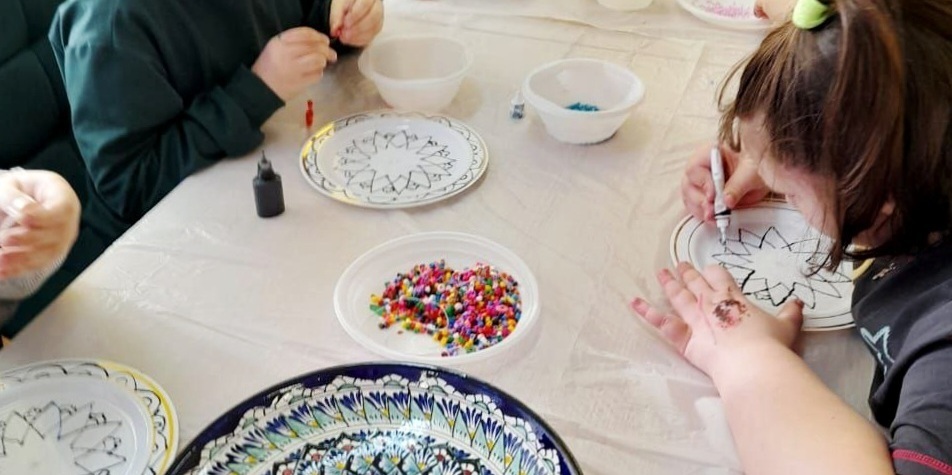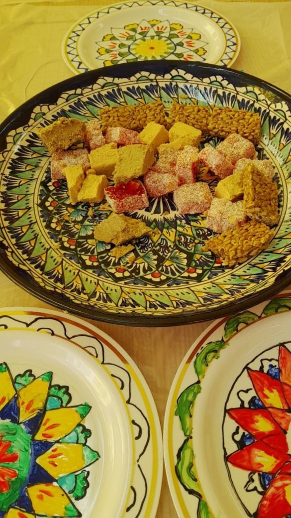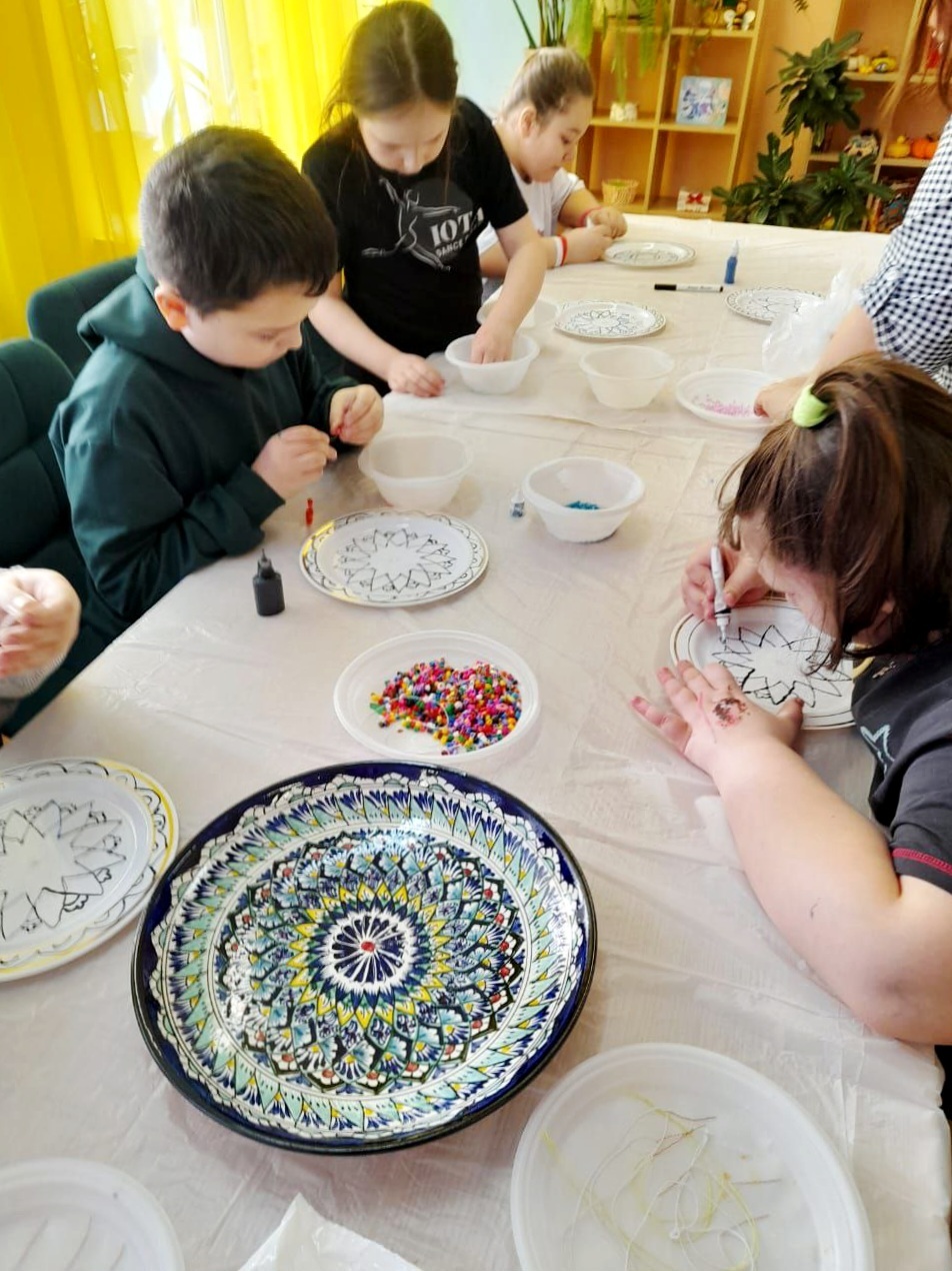 Затем состоялся мастер-класс из цикла «Путешествие по странам и континентам» на тему «Восток – дело тонкое». Обсуждая обычаи и традиции народов Ближнего Востока, изготовили своими руками красивые тарелочки ляганы. В культуре стран бывших республик Советского союза традиционно принято пить чай с восточными сладостями и подавать блюда на таких тарелочках.