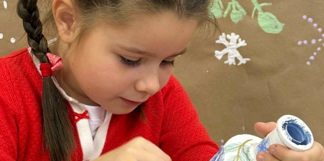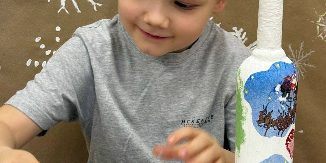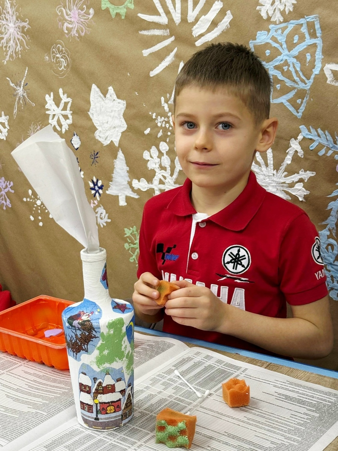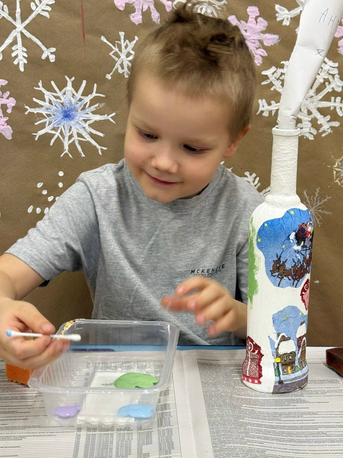 Ребята вместе с родителями оформляли новогоднюю вазу в технике декупаж