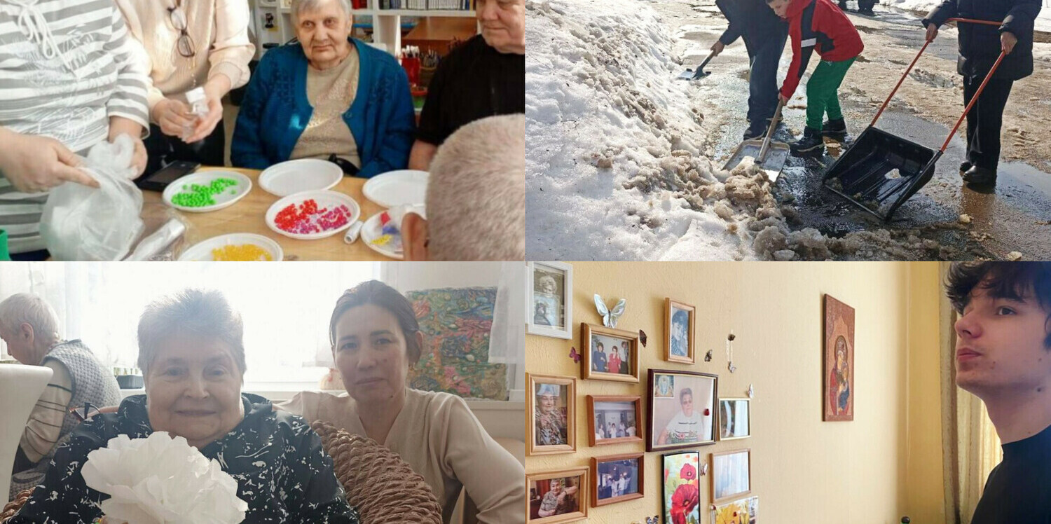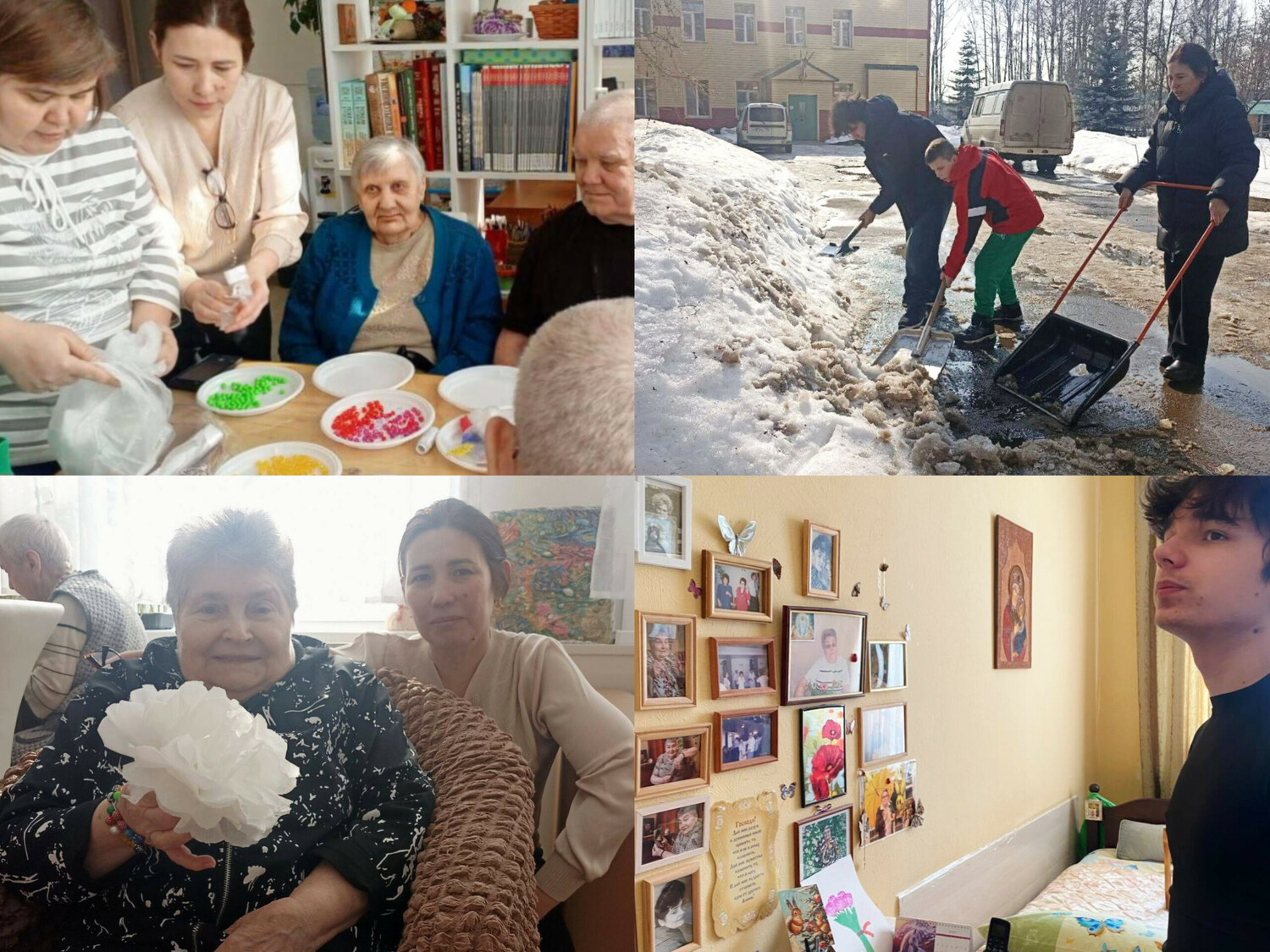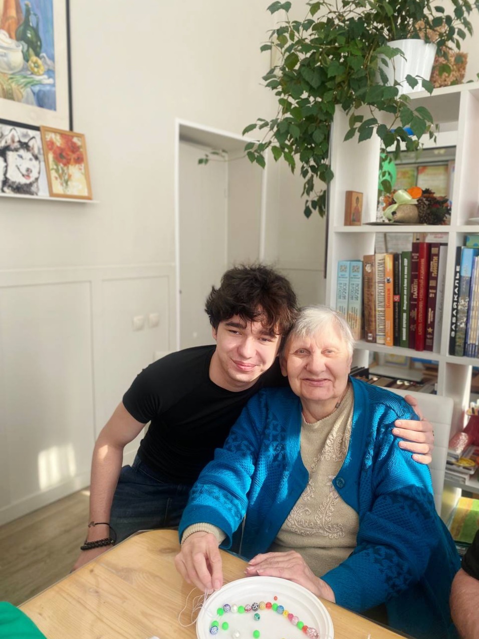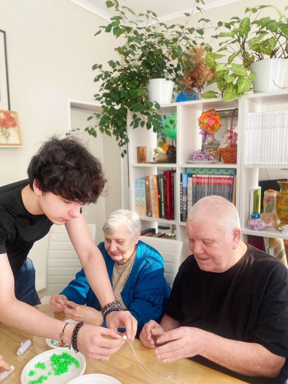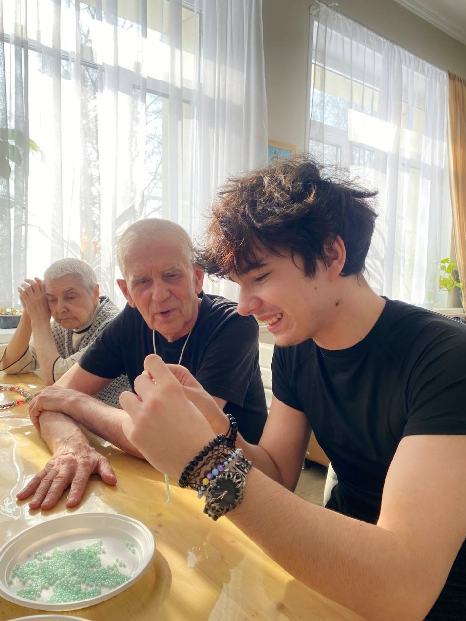 Воспитанники познакомились с бытом бабушек и дедушек, помогли расчистить дорожки на территории интерната, все вместе поучаствовали в прекрасном мастер-классе по созданию объемных цветов и оригинальных бус и браслетов, который провела Ольга Викторовна.