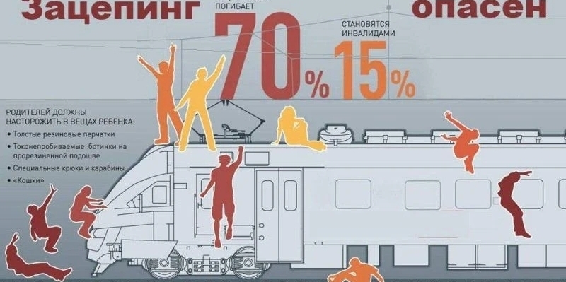 - ️Падение с поезда. На скорости даже небольшая потеря равновесия может привести к падению под колёса – со смертельным исходом или тяжёлыми травмами.