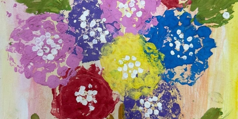 - Аппликация из цветной бумаги «Букет для бабушки»