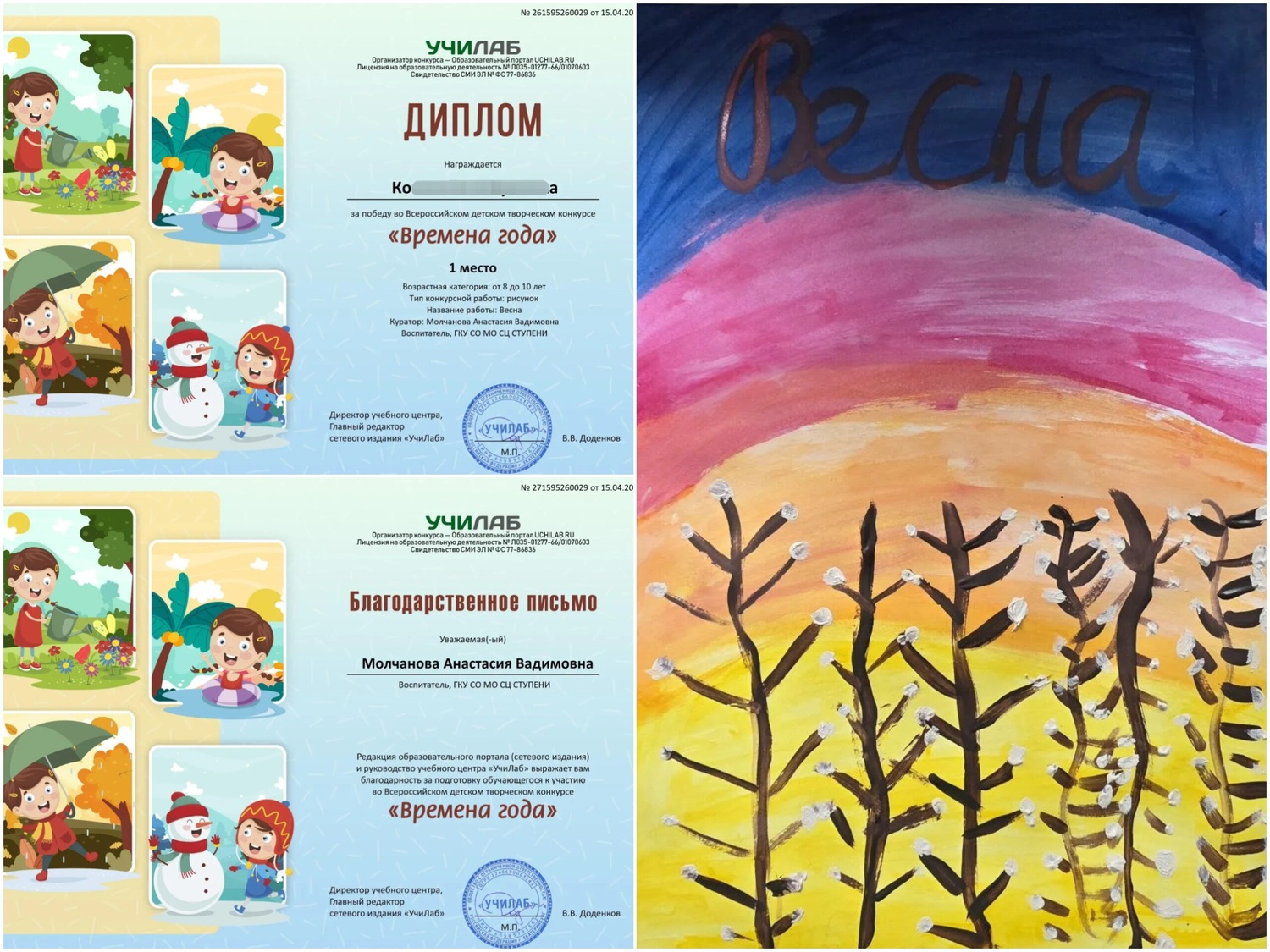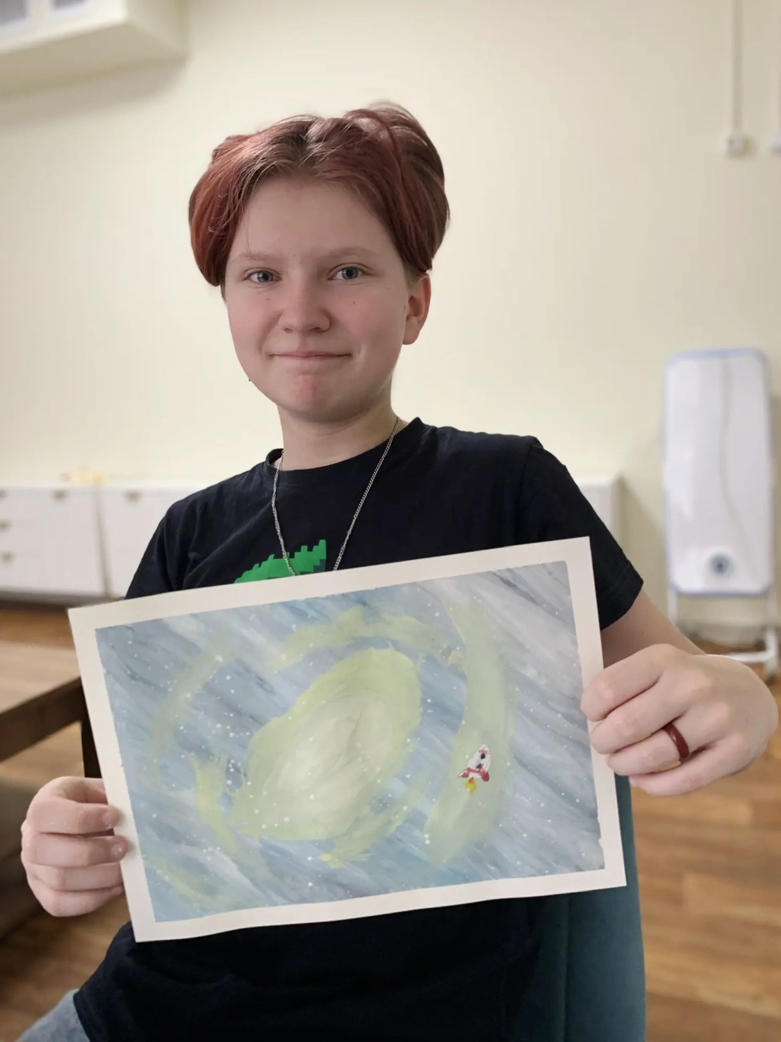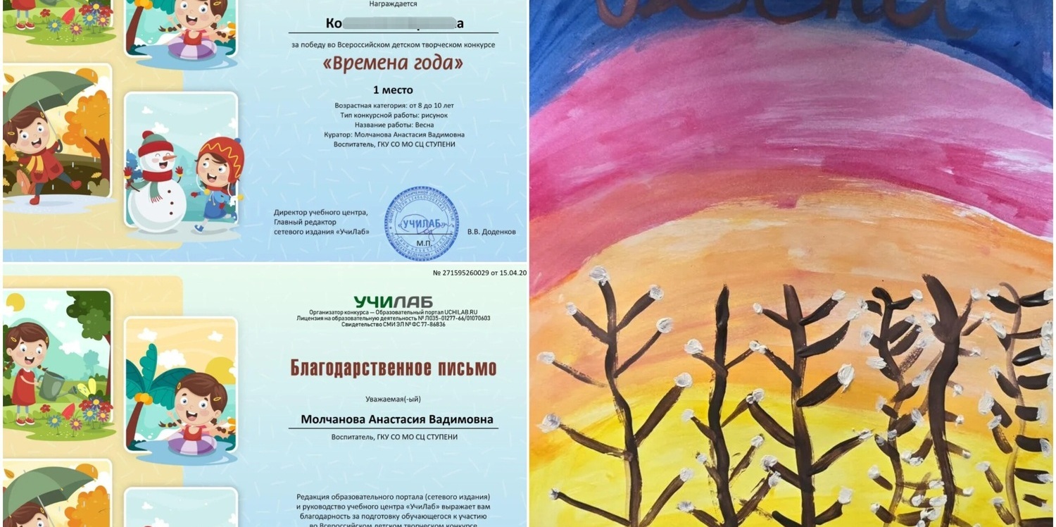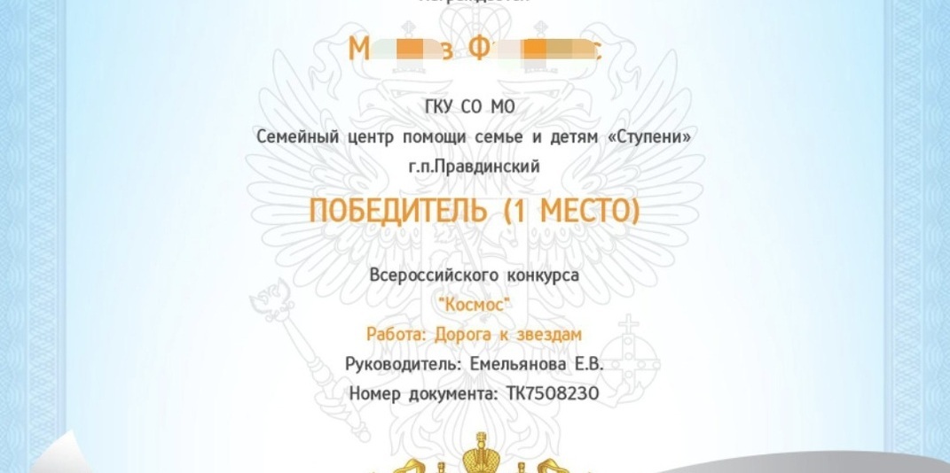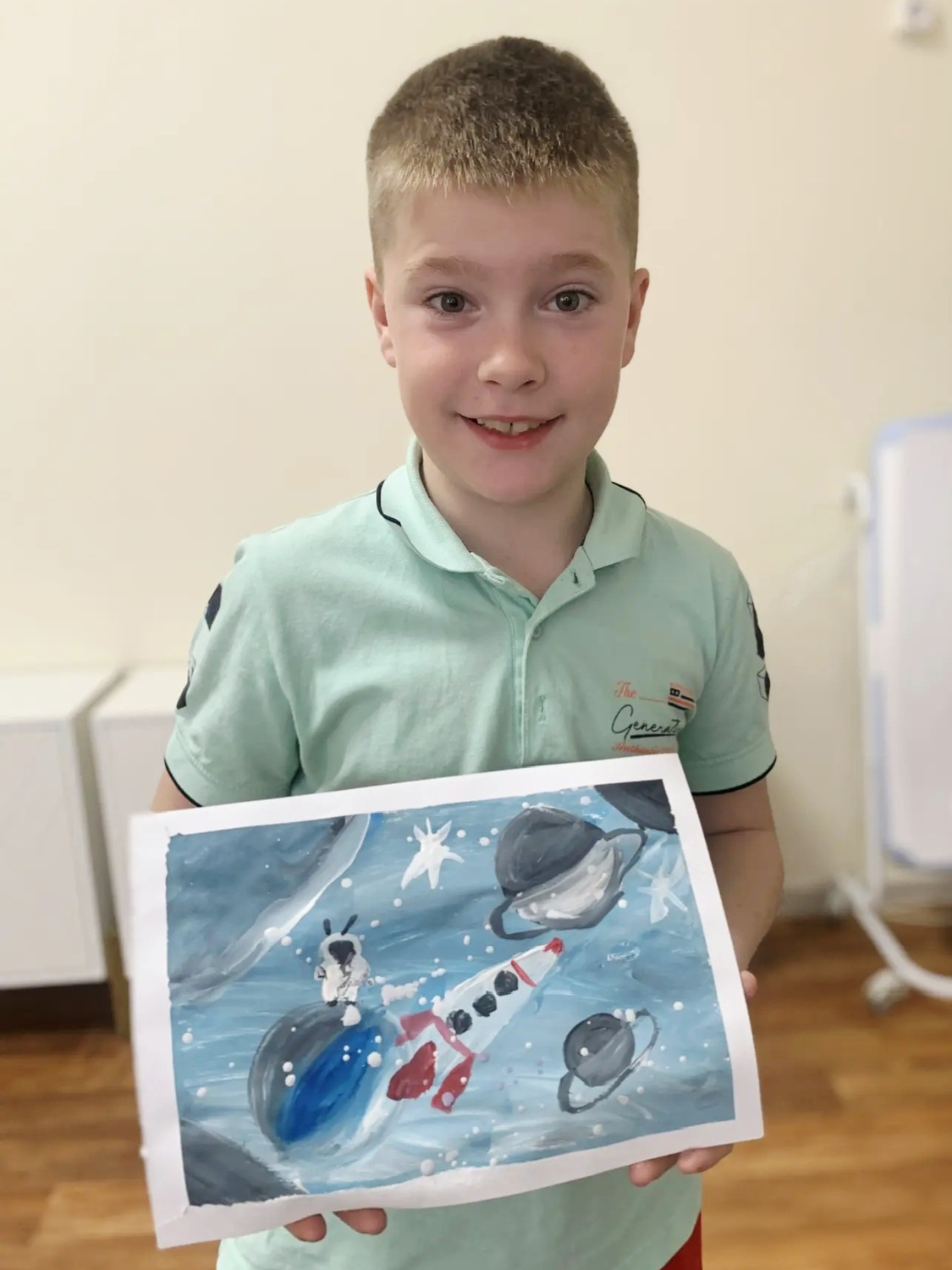 В преддверии Дня космонавтики под руководством наставника воспитанник стационара подготовил рисунок на тему «Дорога к звездам» для Всероссийского конкурса «Космос» Международного образовательного портала «Солнечный свет».