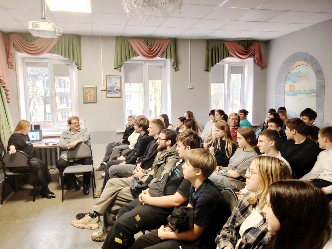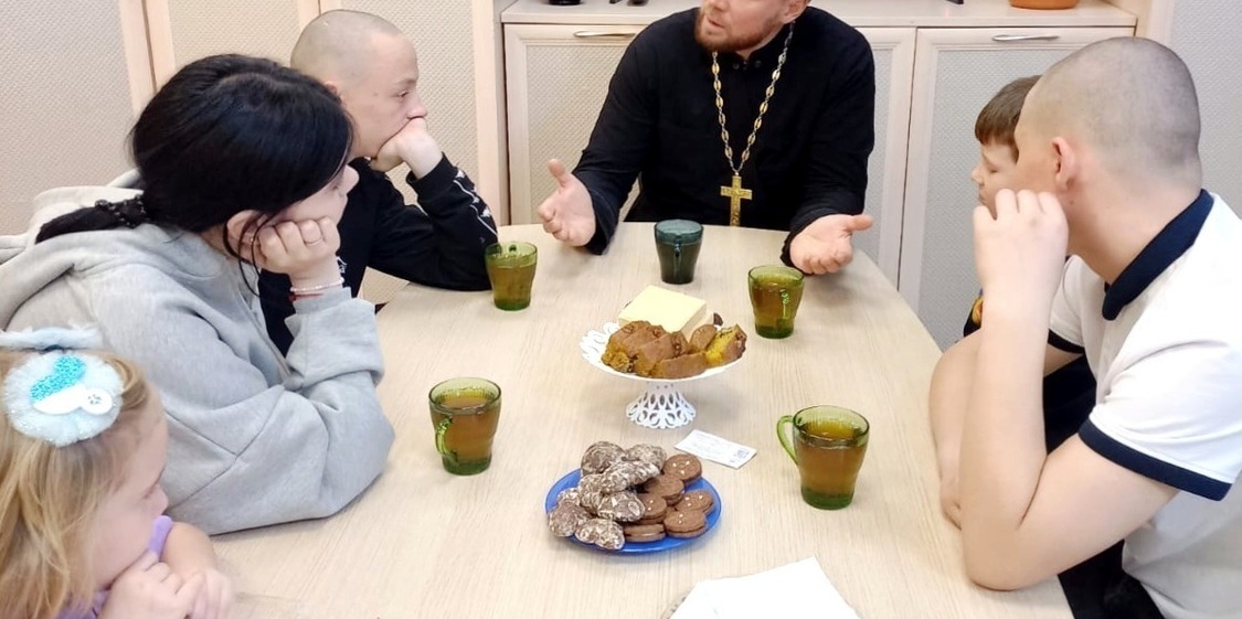 17 октября воспитанников стационара навестил о. Виктор с духовно-просветительской беседой, направленной на формирование нравственных качеств, мировоззрения и моральных ценностей у подрастающего поколения. Ребята с большим вниманием слушали священника, задавали вопросы, общались на духовные темы в уютной домашней обстановке.
