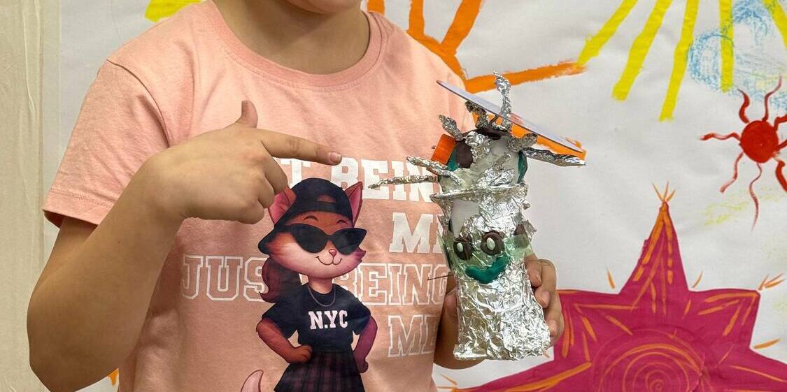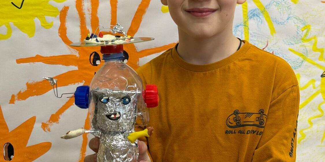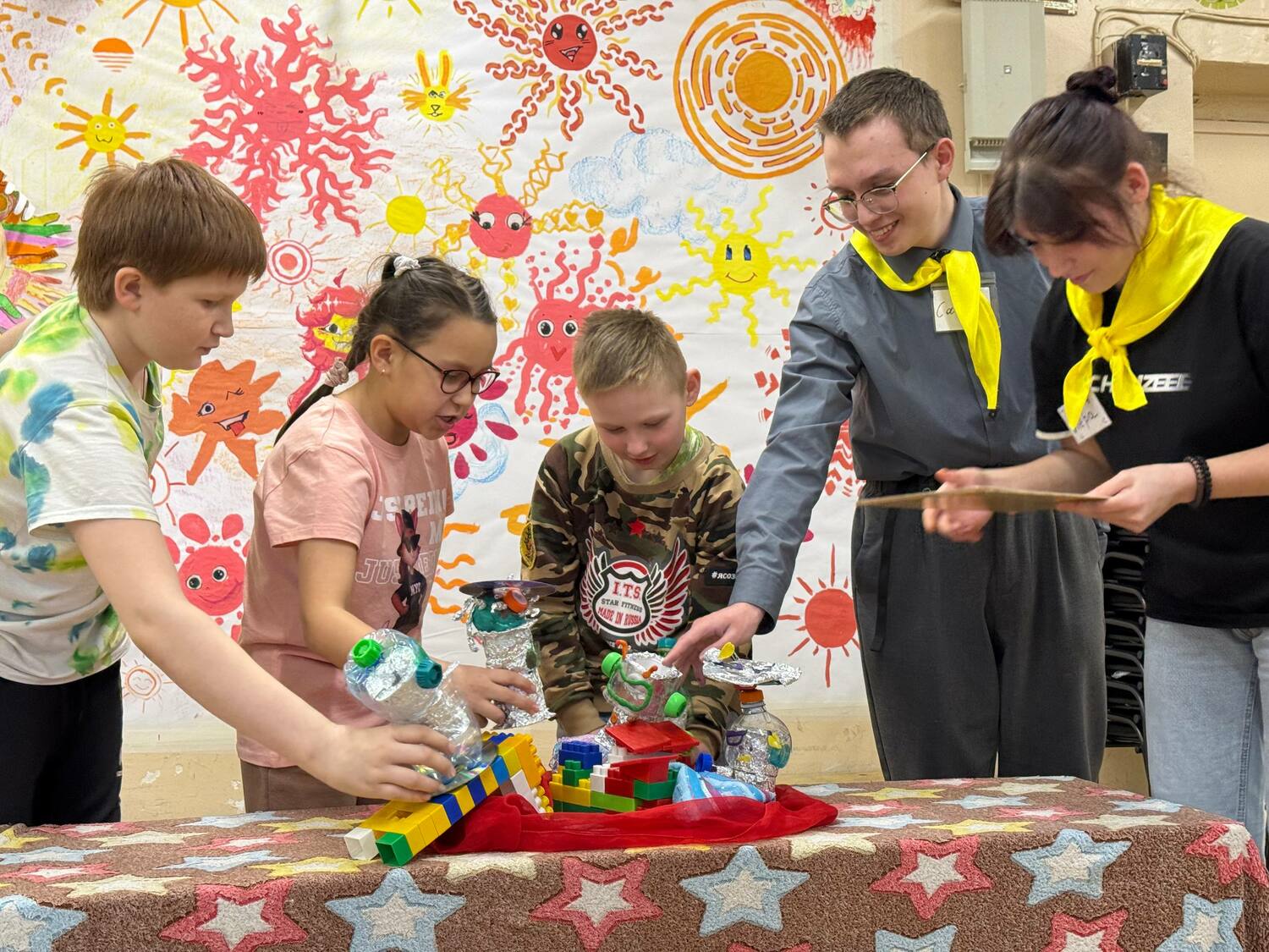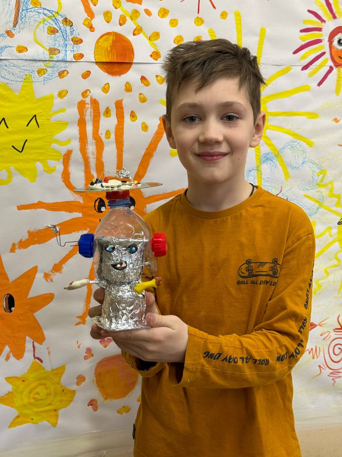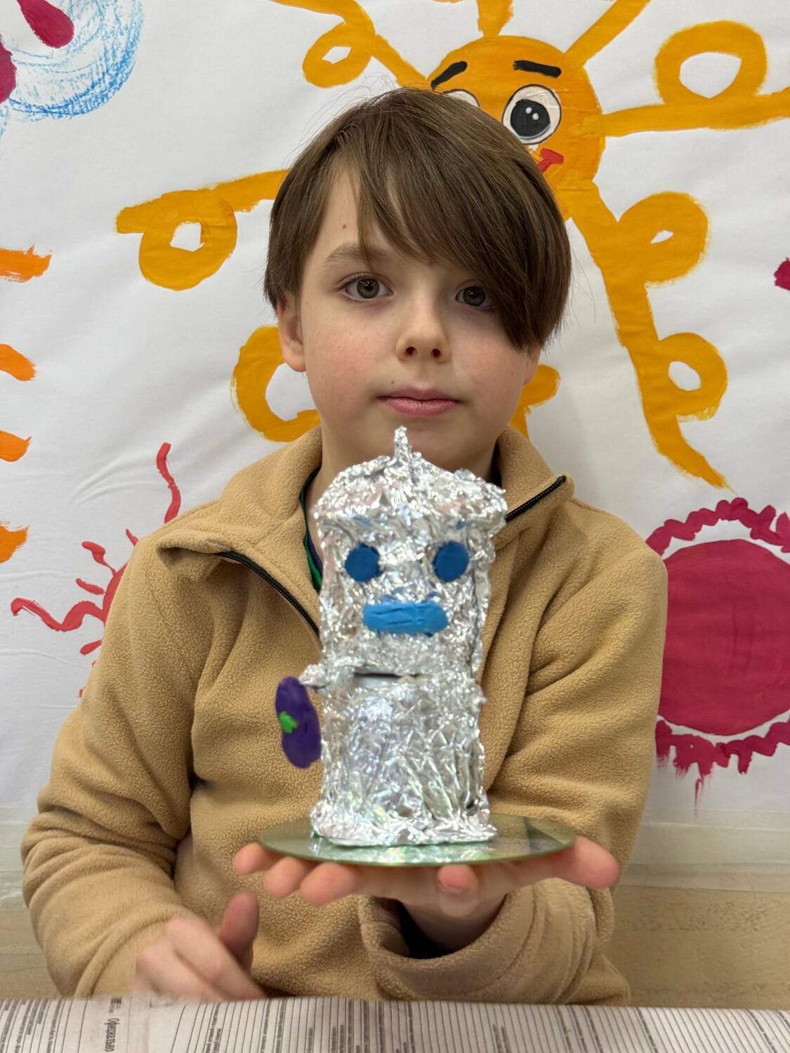 На занятиях семейного клуба ребята смастерили робота из бросового материала, который помогает закрепить полезные привычки или избавиться от вредных.