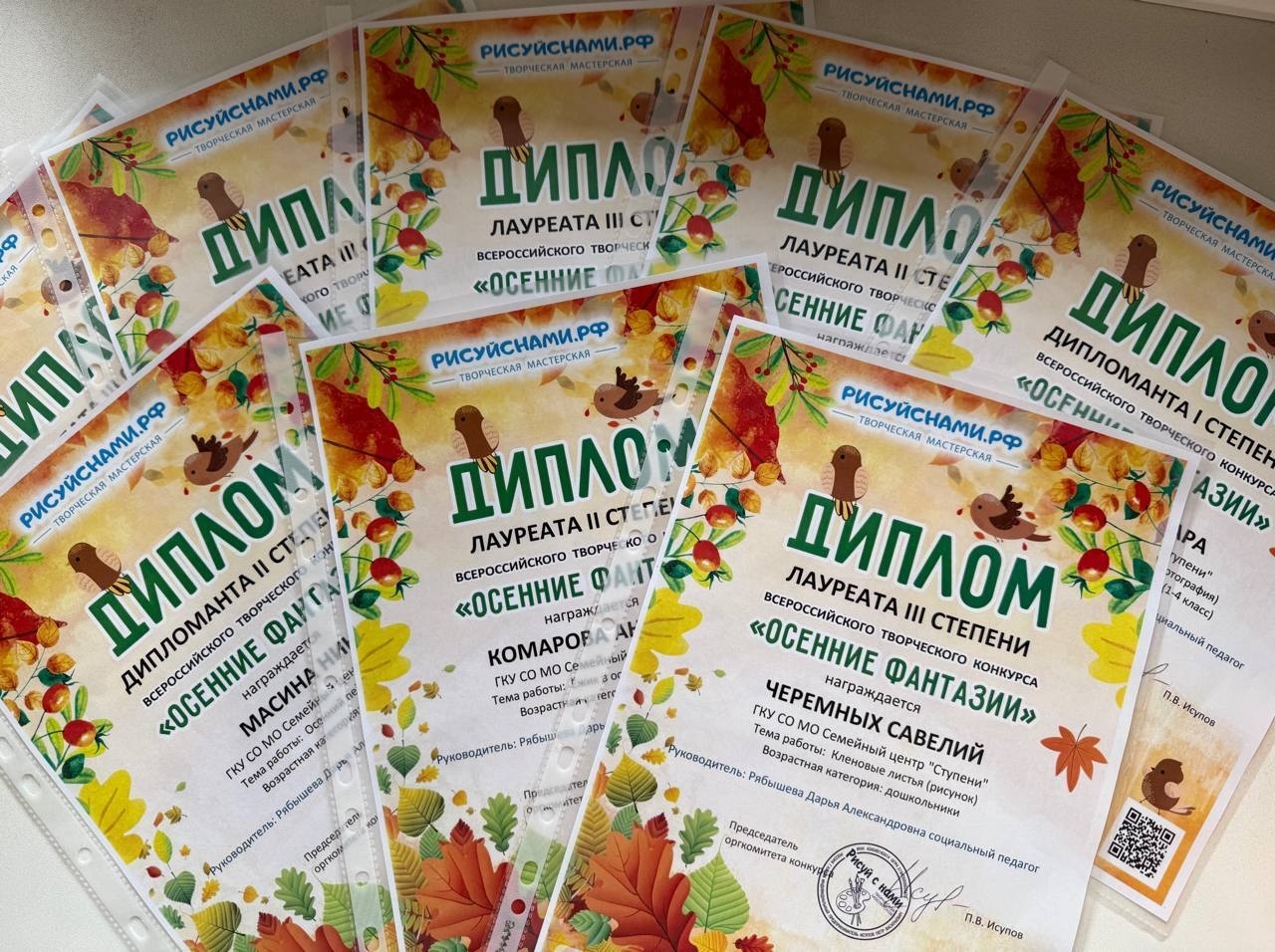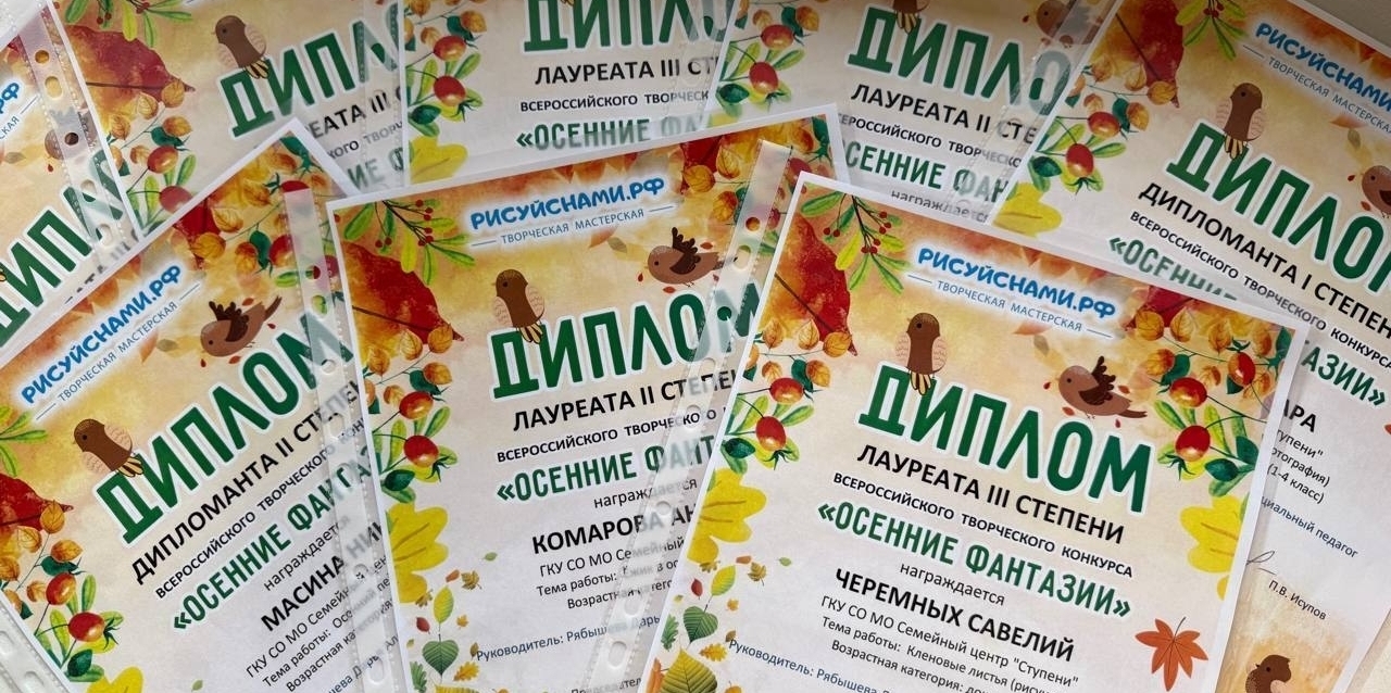 Участники семейного клуба «Малышок» г. Сергиев Посад принимали участие во Всероссийском творческом конкурсе рисунков «Осенние Фантазии» от творческой мастерской Рисуйснами.РФ
