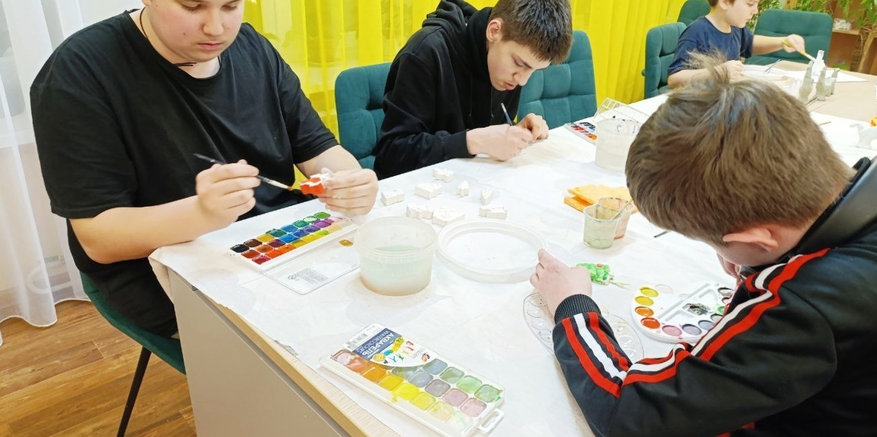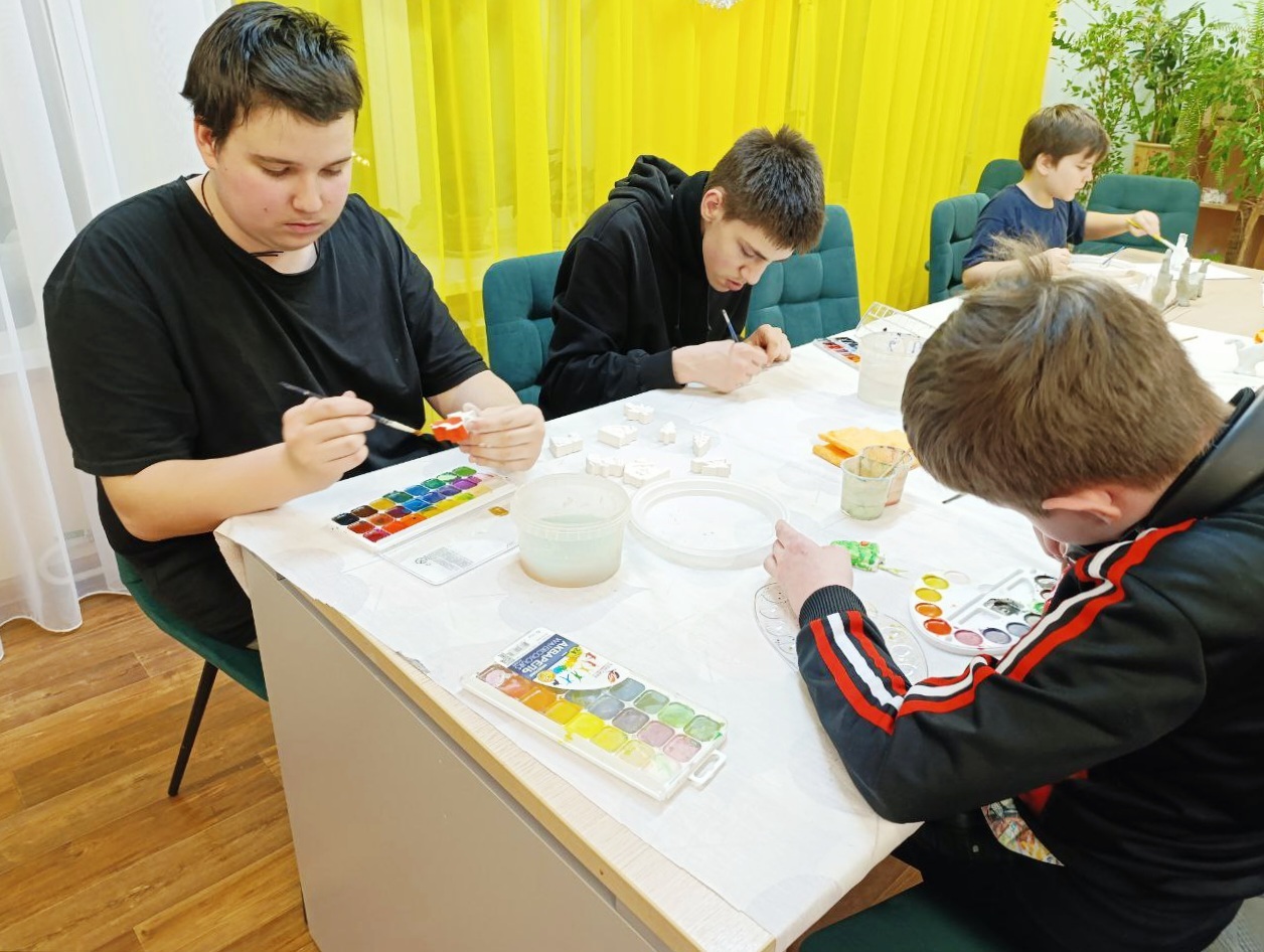 Воспитанники полустационара нарисовали открытки участникам СВО и приняли участие в творческом мастер-классе