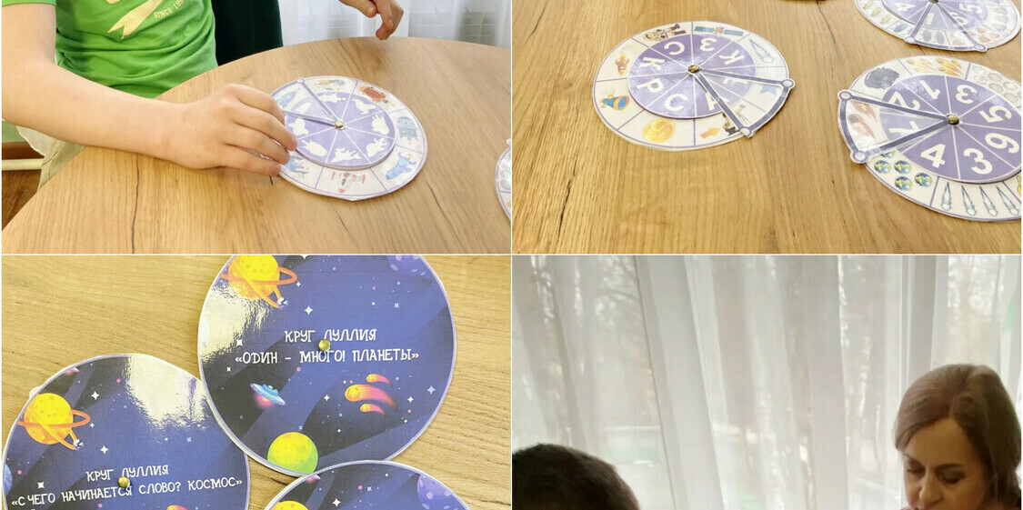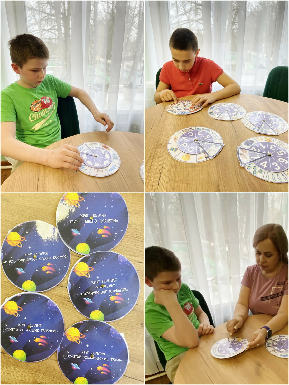 Дидактическая игра «Круги Луллия», развивали мышление и творческие способности, выполняя задания «Чья тень?», «С чего начинается слово? Космос», «Один - много! Планеты».