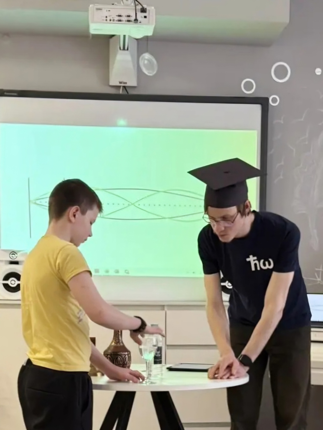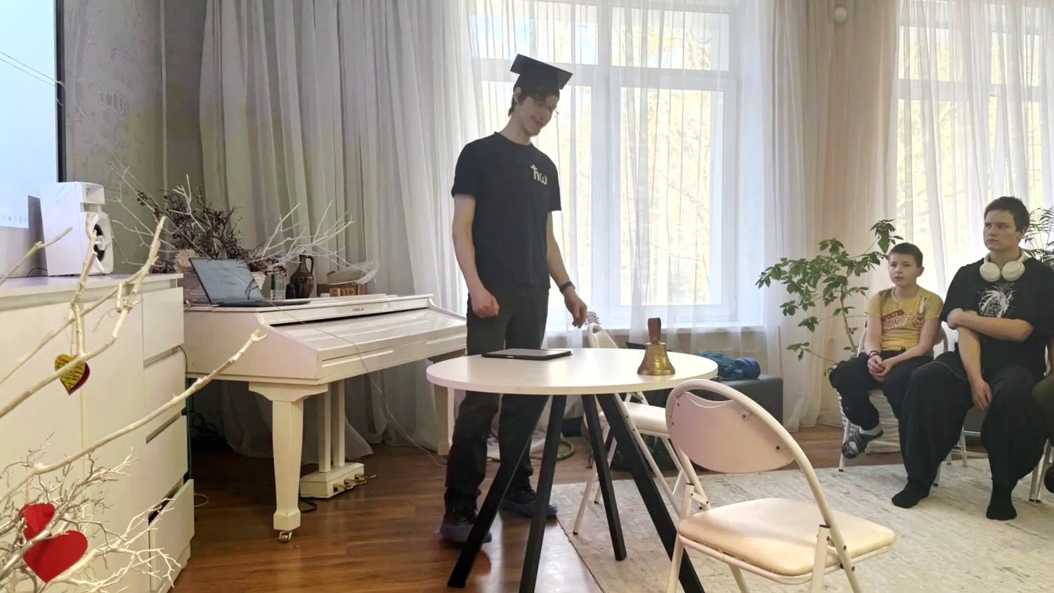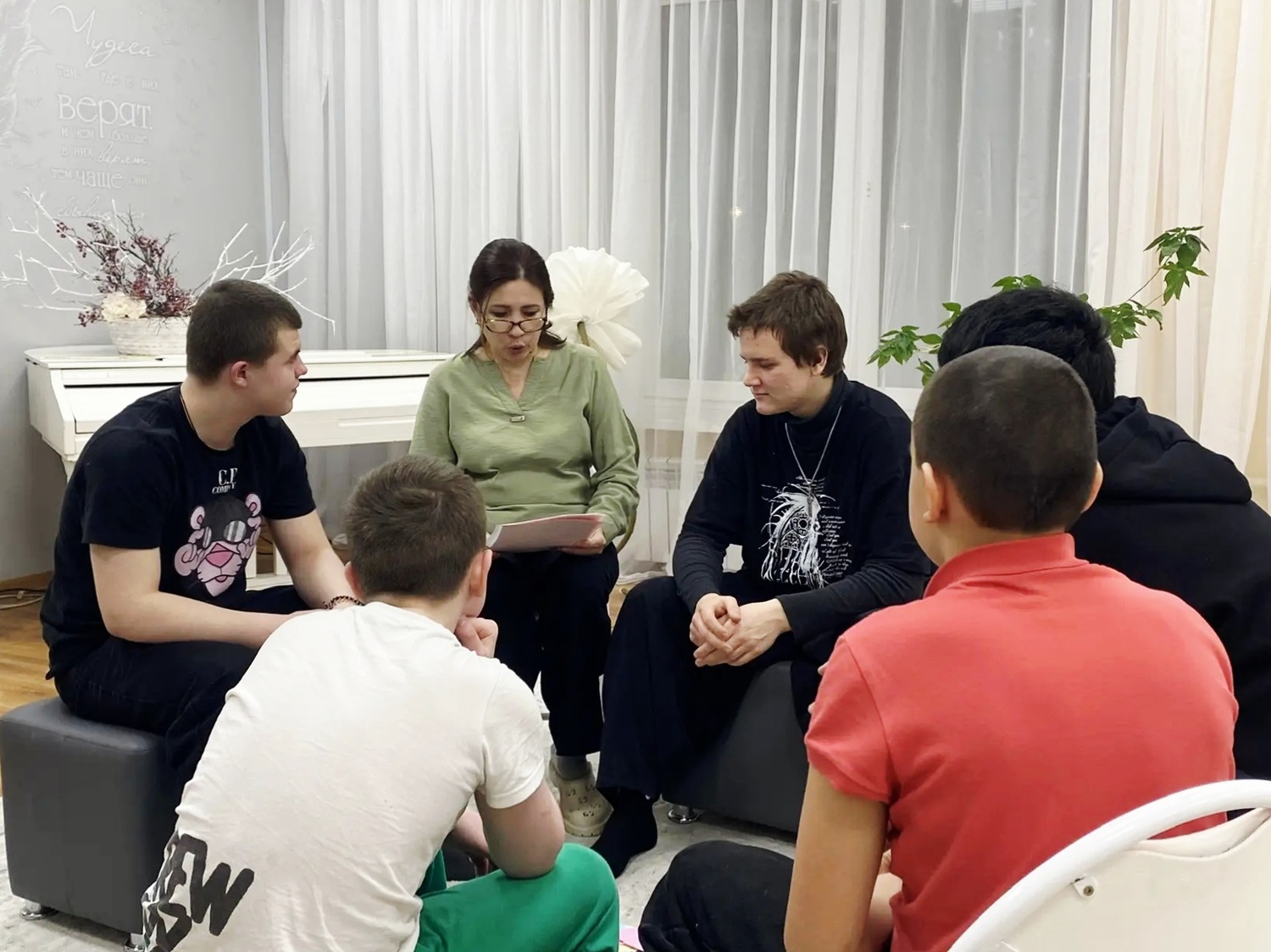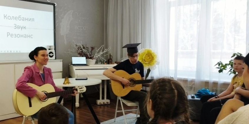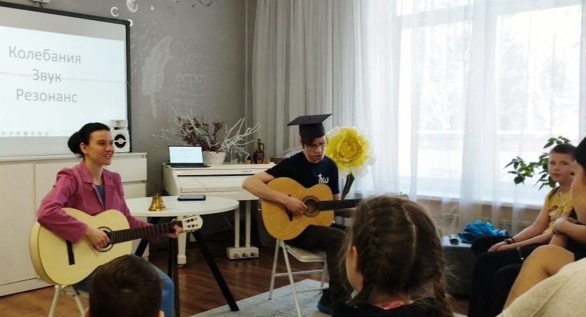 Волонтеры провели познавательную лекцию, в ходе которой показали детям физические опыты со звуком. Затем вместе играли на гитаре и пели, готовили кекс с цукатами, чаевничали, гуляли на территории центра – время пролетело незаметно!