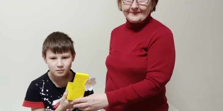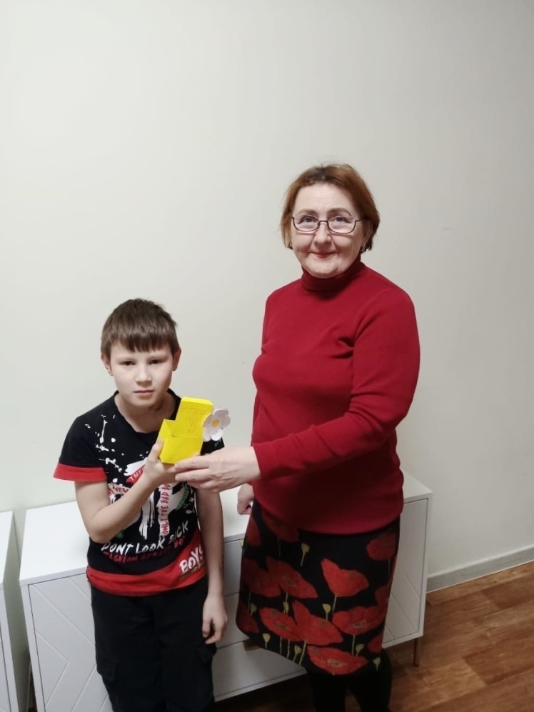 Наш воспитанник сделал своими руками «Коробочку с сюрпризом» – подарок Людмиле Николаевне в знак благодарности за интересные занятия и заботу