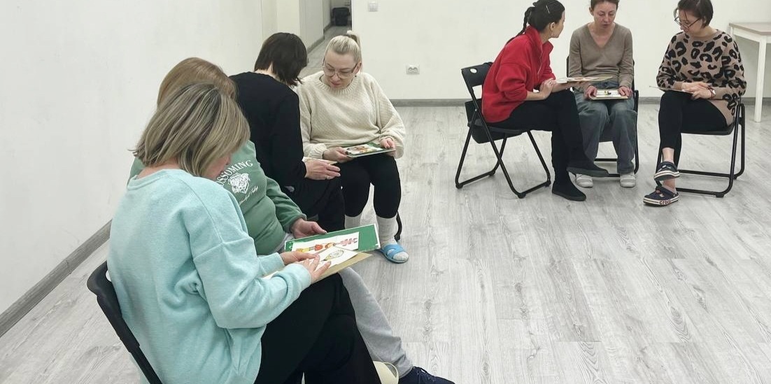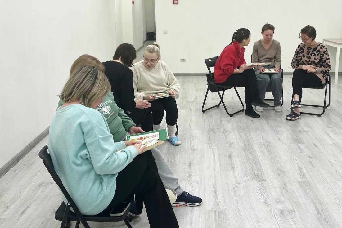 На прошедшей встрече участницы отреагировали актуальное состояние через метафорические карты, вспоминали как прошла неделя, с какими трудностями сталкивались и что помогло с ними справиться.