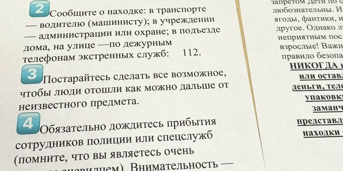 - ️ Постараться сделать всё возможное, чтобы люди отошли как можно дальше от неизвестного предмета.