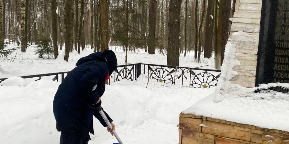 Воспитанники стационара в рамках проекта по волонтерскому движению продолжают делать добрые дела. На этот раз наш трудовой десант высадился в поселке Зеленоградский. Мальчики под руководством педагога расчистили от снега памятник воинам, погибшим в Великой Отечественной войне. Таким образом юные патриоты отдали дань уважения павшим героям.
