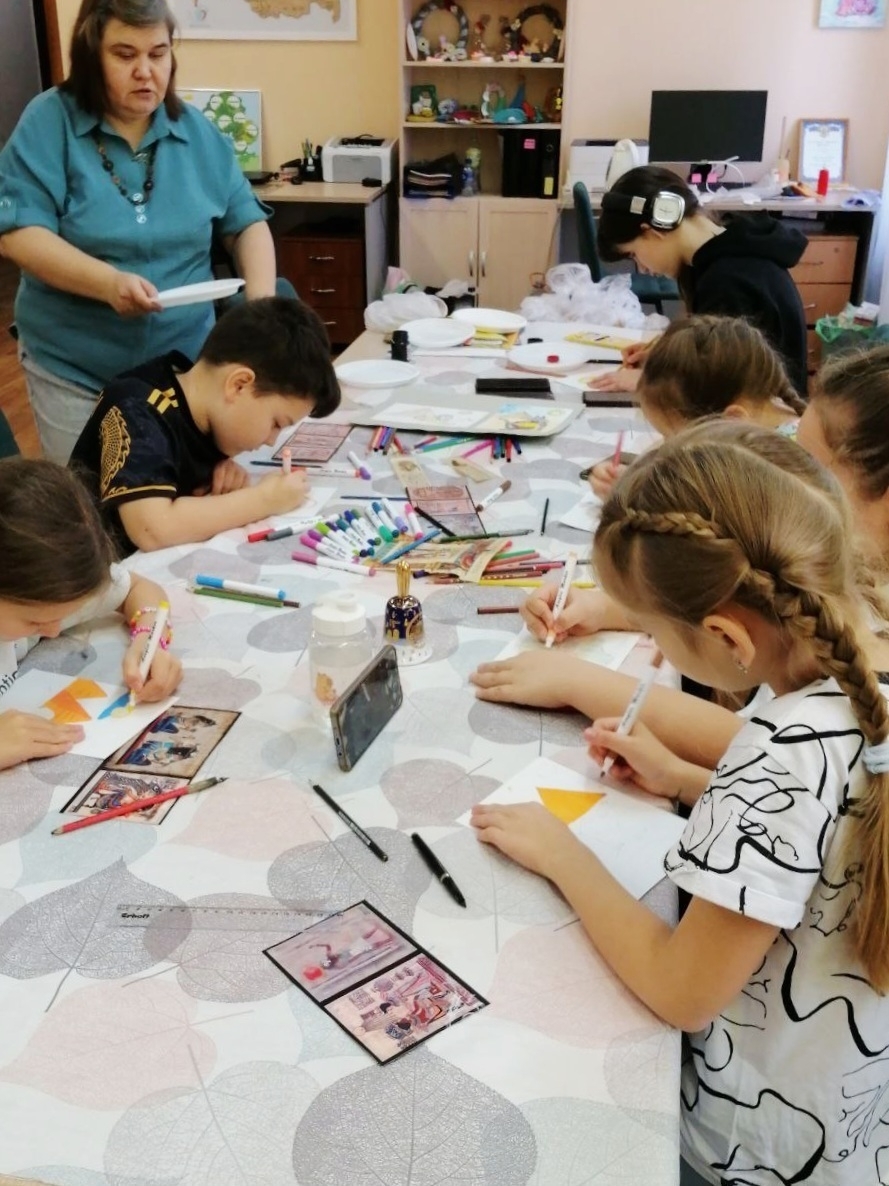 Ребята с радостью приняли участие в интерактивной беседе, ознакомились с музейными артефактами, найденными исследователями на территории Пушкинского округа, посмотрели очень интересную презентацию о далёком прошлом наших мест. Затем приняли участие в мастер-классе по изготовлению магнитов в технике декупаж.