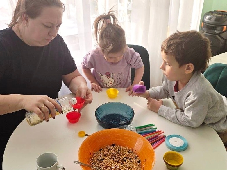 В процессе дети узнали о важности заботы о природе и о том, как можно помочь зимующим птицам. Сначала ребята сформировали фигурки и заморозили их, а затем продели в них веревочки и повесили на деревья.