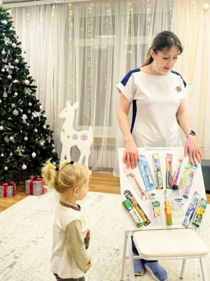 Каждый ребенок получил индивидуальные рекомендации, что сделало встречу особенно ценной. В завершение мероприятия медики порадовали детей подарками — яркими зубными щетками, а также теплыми поздравлениями с наступающим Новым годом. В знак благодарности воспитанники приготовили для своих гостей милые сюрпризы — игрушки в форме забавных зубиков, сшитые собственными руками из фетра и ваты.