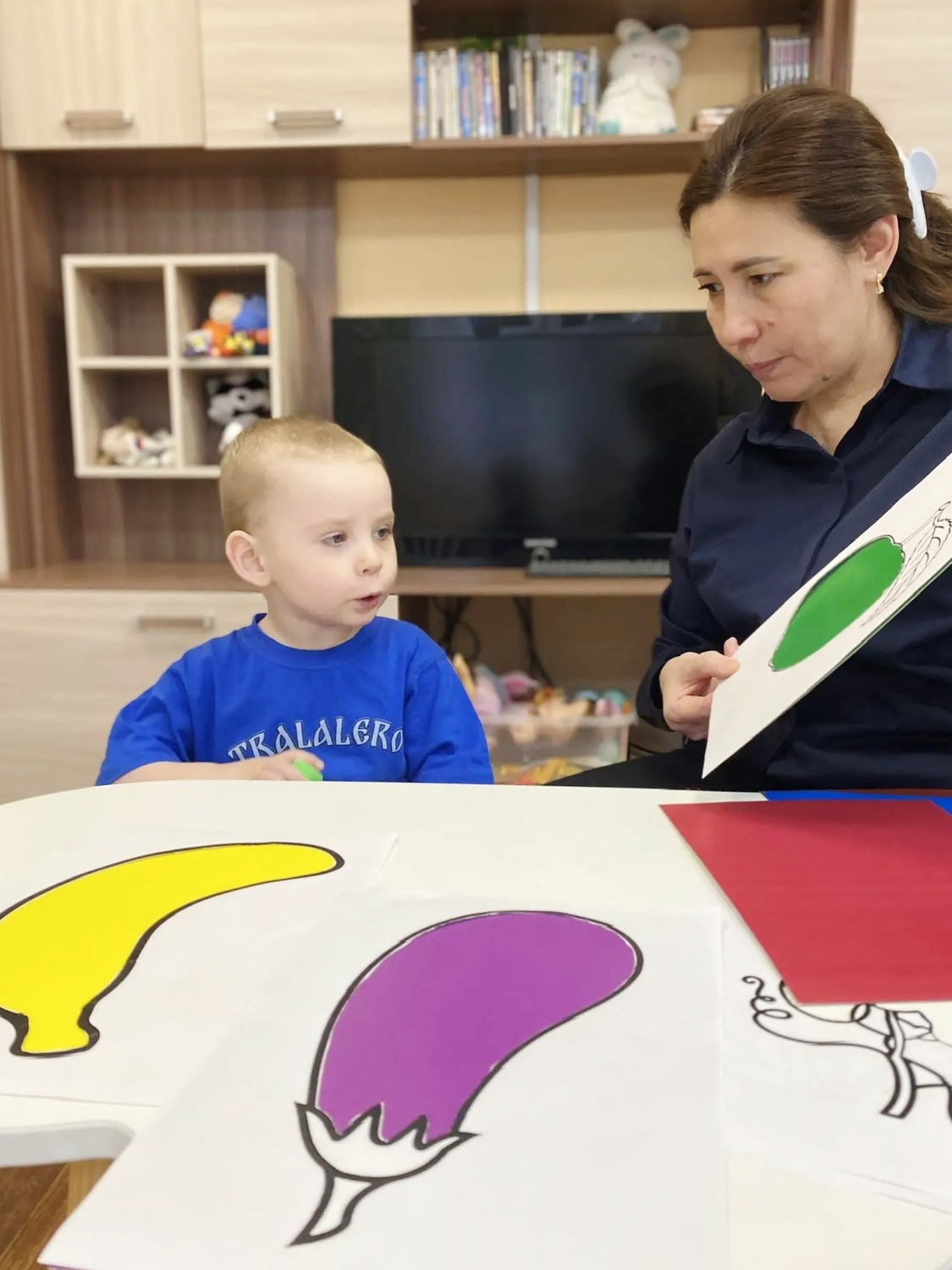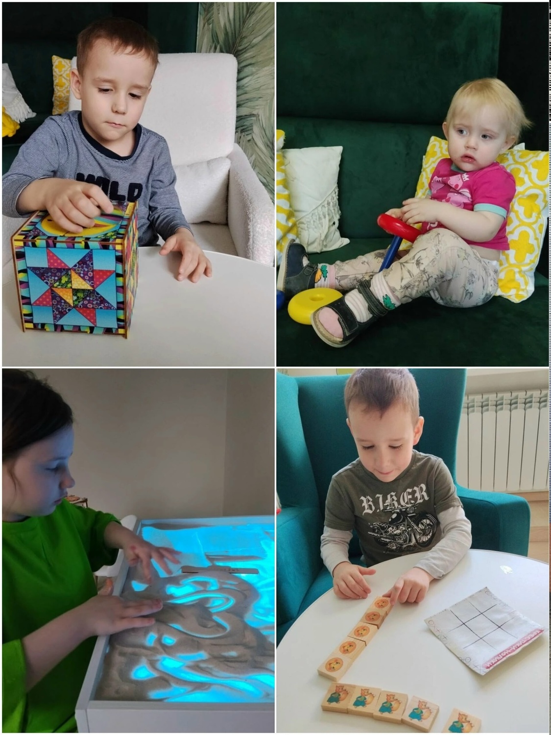 На прошедших занятиях с воспитанниками стационара логопед Людмила Николаевна активно использовала различные игровые наборы и дидактические материалы – карточки, сенсорные мячики, магнитные доски, бизиборд, балансир и др. Дети учились сортировать, манипулировать мелкими предметами, выполнять более точные действия, что способствовало развитию моторики, тактильных ощущений, логики, внимания, глазомера, координации движений, стимуляции речевой активности. Каждый успешный результат сопровождался похвалой. Также позанимались артикуляционной гимнастикой, направленной на улучшение произношения и повышение четкости речи.