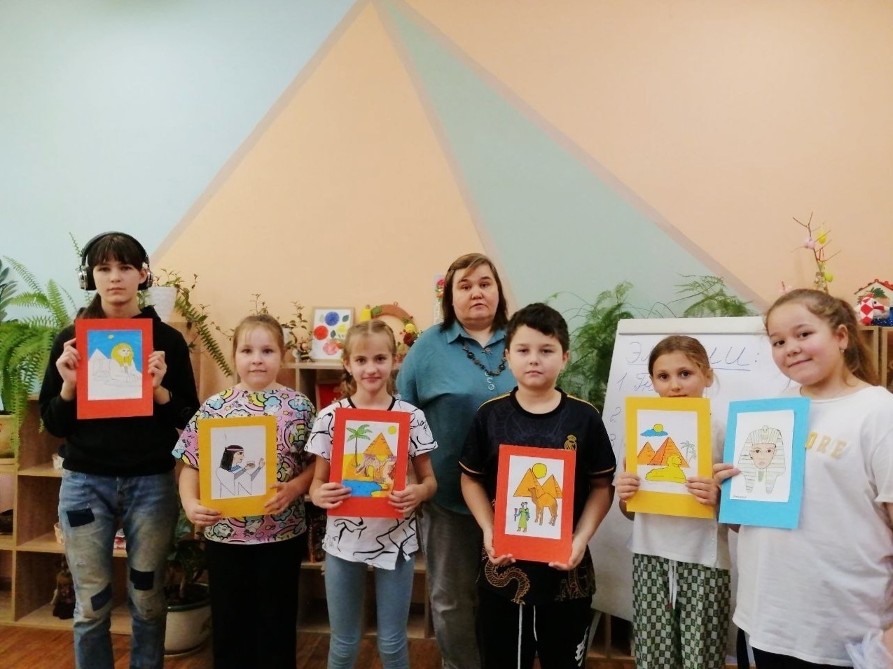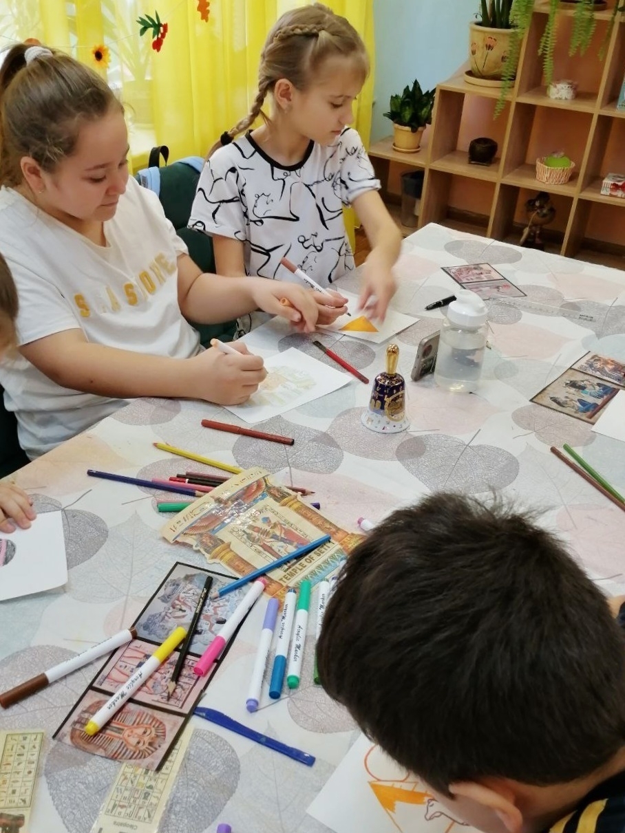 В субботу в рамках психолого-педагогической программы «Гармония» состоялось очередное занятие полустационара из цикла «Путешествие по странам и континентам». На этот раз ребята отправились в Египет. Педагог творческой мастерской Ольга Викторовна провела мастер-класс по рисованию символов Древнего Египта – пирамид, фараонов и животных пустыни. Погрузились в традиции и обычаи древней цивилизации. Ребята посадили семена финиковой пальмы. Провели фотосессию с макетом древних пирамид. Получилось познавательное и увлекательное путешествие!