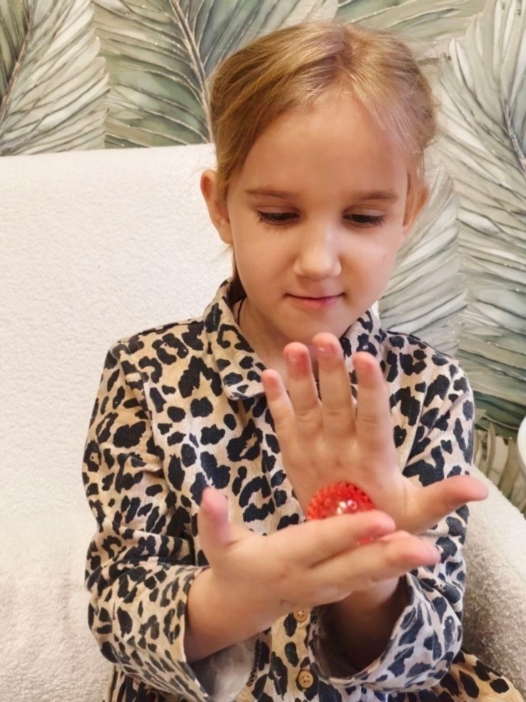 С помощью су-джок специалист помогает детям расслабиться и сконцентрироваться. Растирая ладошки массажером, они учатся выражать свои мысли, ведь пальчики помогают говорить! Известно, что развитие мелкой моторики стимулирует речевые центры в головном мозге