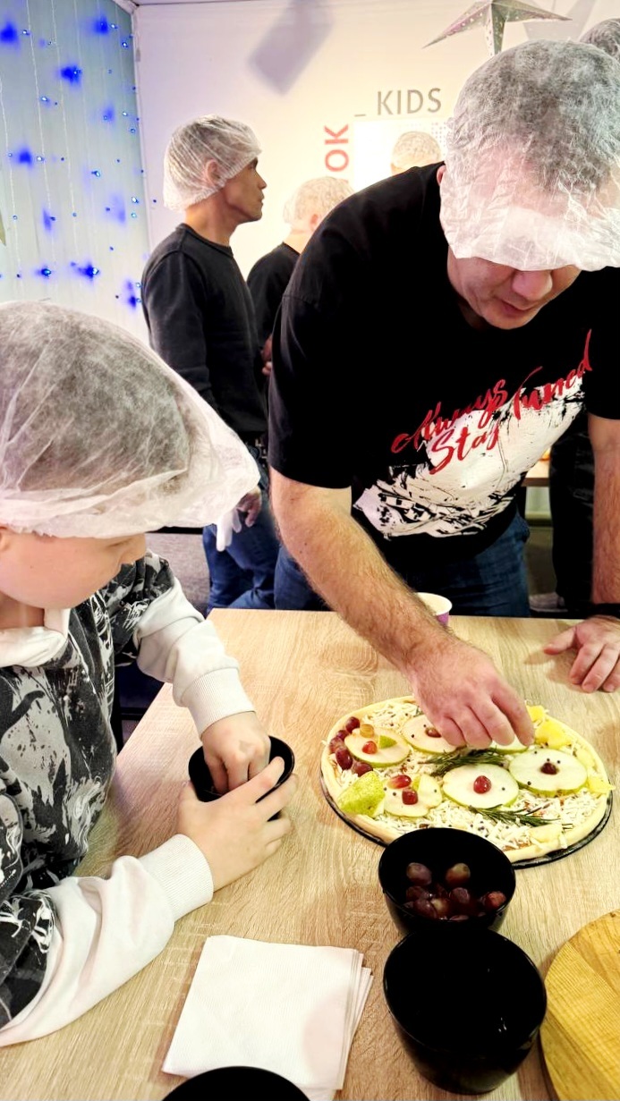Для ребят это было не только интересное занятие, но и возможность проявить свои таланты. Они с энтузиазмом выбирали и красиво выкладывали начинки, а младшие девочки даже приготовили оригинальную пиццу с хурмой, что вызвало восторг у всех присутствующих.