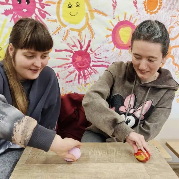 В преддверии светлого праздника Пасхи воспитанники стационара раскрашивали гуашью главный символ – яйцо, комбинируя различные техники.