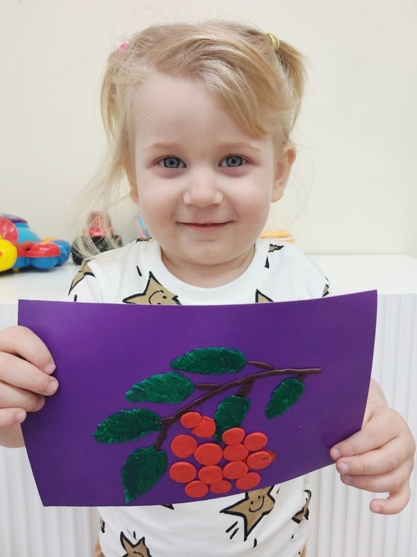 - ️ На занятии «Ветка рябины» учились раскатывать, сплющивать, сглаживать пластилин для создания ягод, веток и листьев.