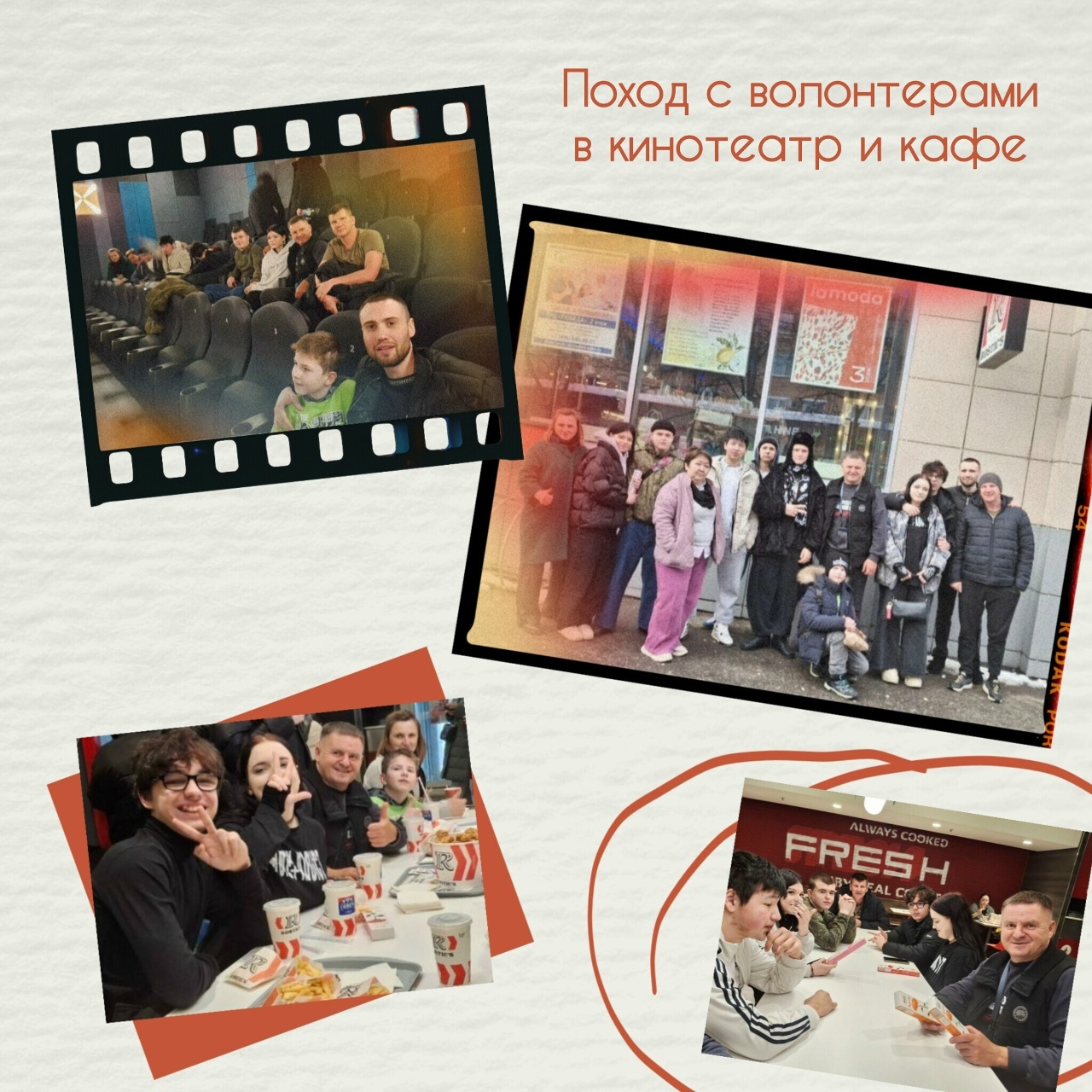 После просмотра фильма волонтёры пригласили всех в кафе «Rostic’s», где ребята насладились угощениями и провели время в дружеской атмосфере. Такие моменты дарят радость и создают теплые воспоминания. Спасибо добрым людям за незабываемый день!