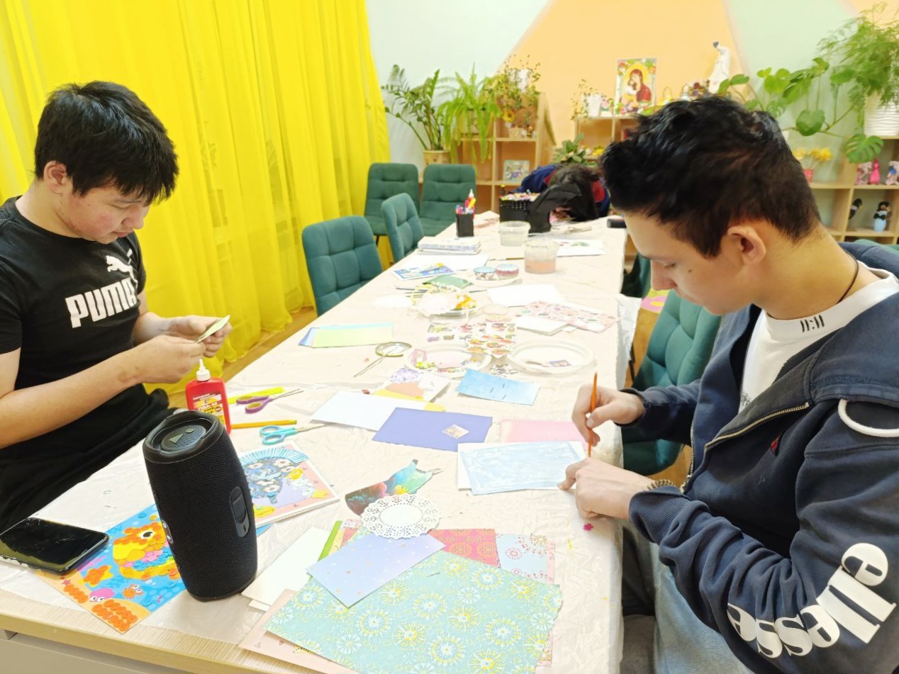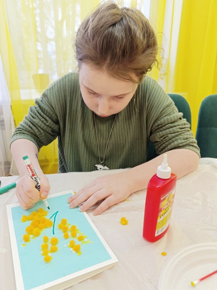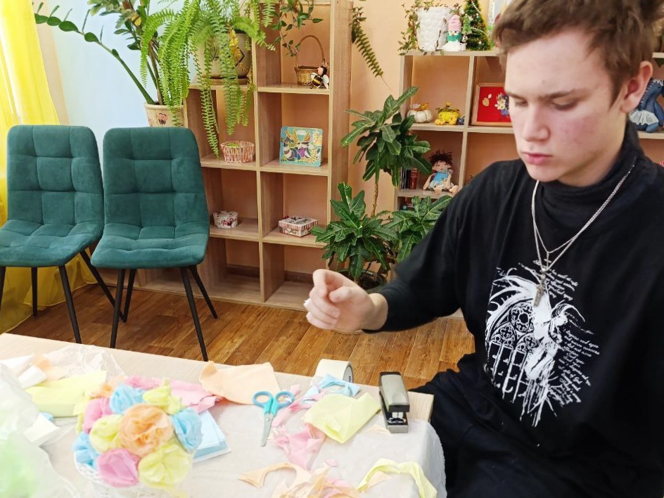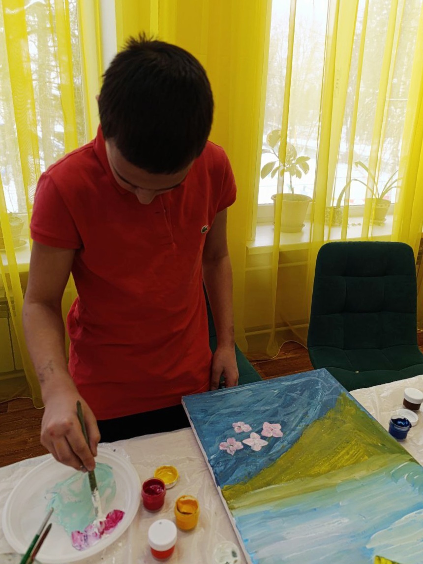 Воспитанники стационара в Правдинском на занятиях в творческой мастерской готовят оформление к празднику. Ребята нарисовали живописные картины с искусственными цветами, сделали два больших цветка из гофрированной бумаги, начали делать поздравительные открытки. Создают весеннее настроение!