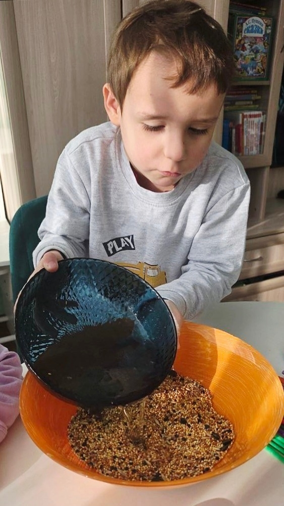 Сегодня воспитанники стационара приняли участие в создании прикормок для птиц. Используя зерновой корм и желатин, они изготовили вкусное и полезное лакомство для пернатых.