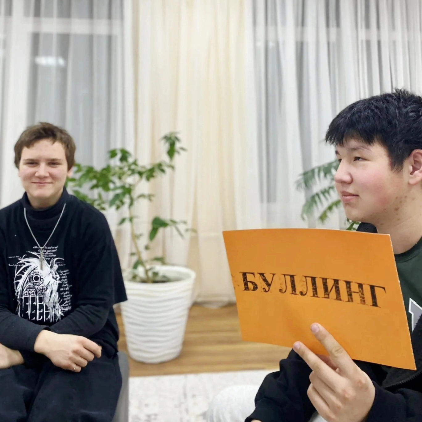 Воспитанники стационара послушали мини-лекцию о буллинге и реальные истории о жертвах травли (дали им оценки с помощью разноцветных карточек), составляли портреты участников буллинга, сыграли в игру «Пиф-Паф» и в упражнение «Горячий стул».