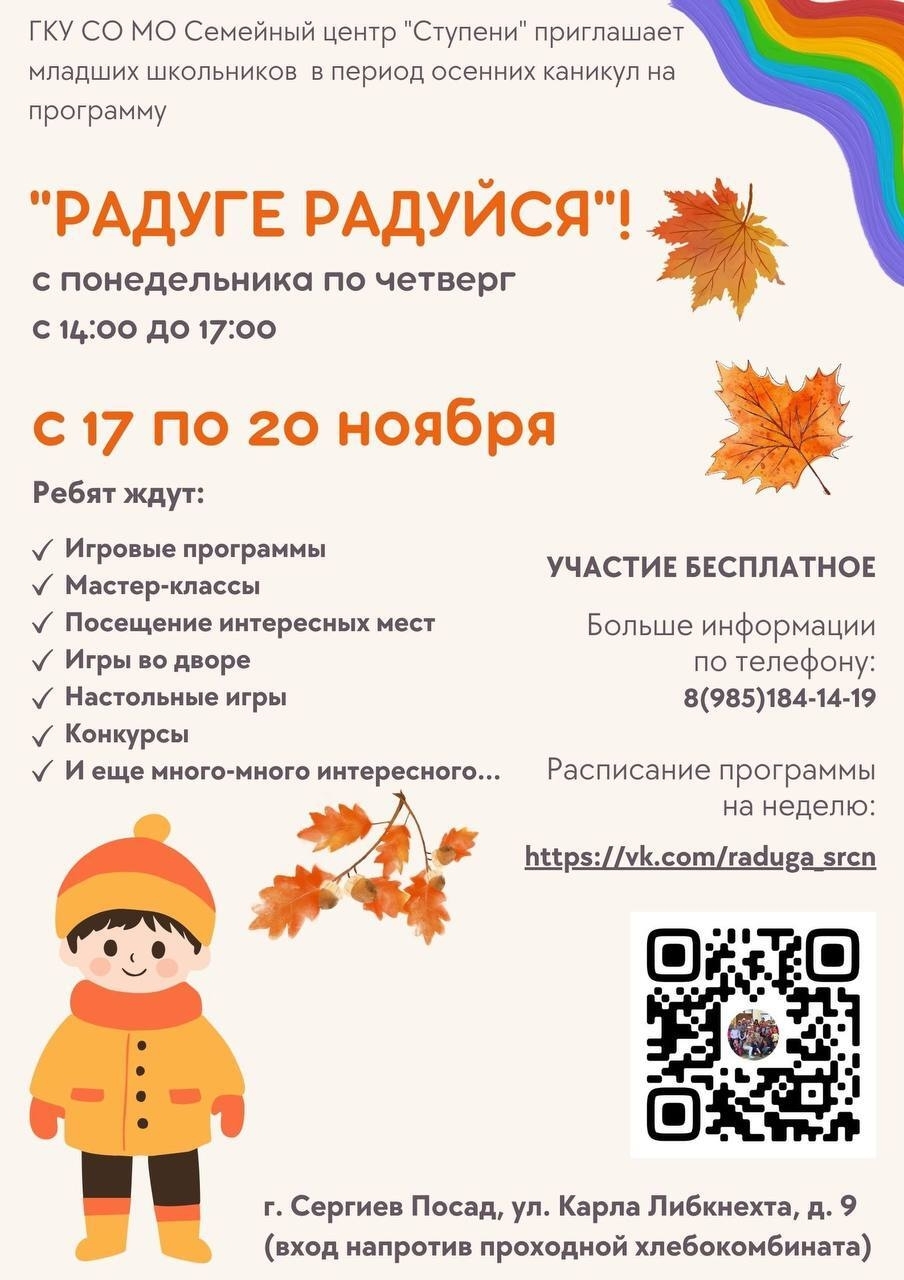 Приглашаем детей и подростков школьного возраста в каникулы на программу «Радуге Радуйся!»