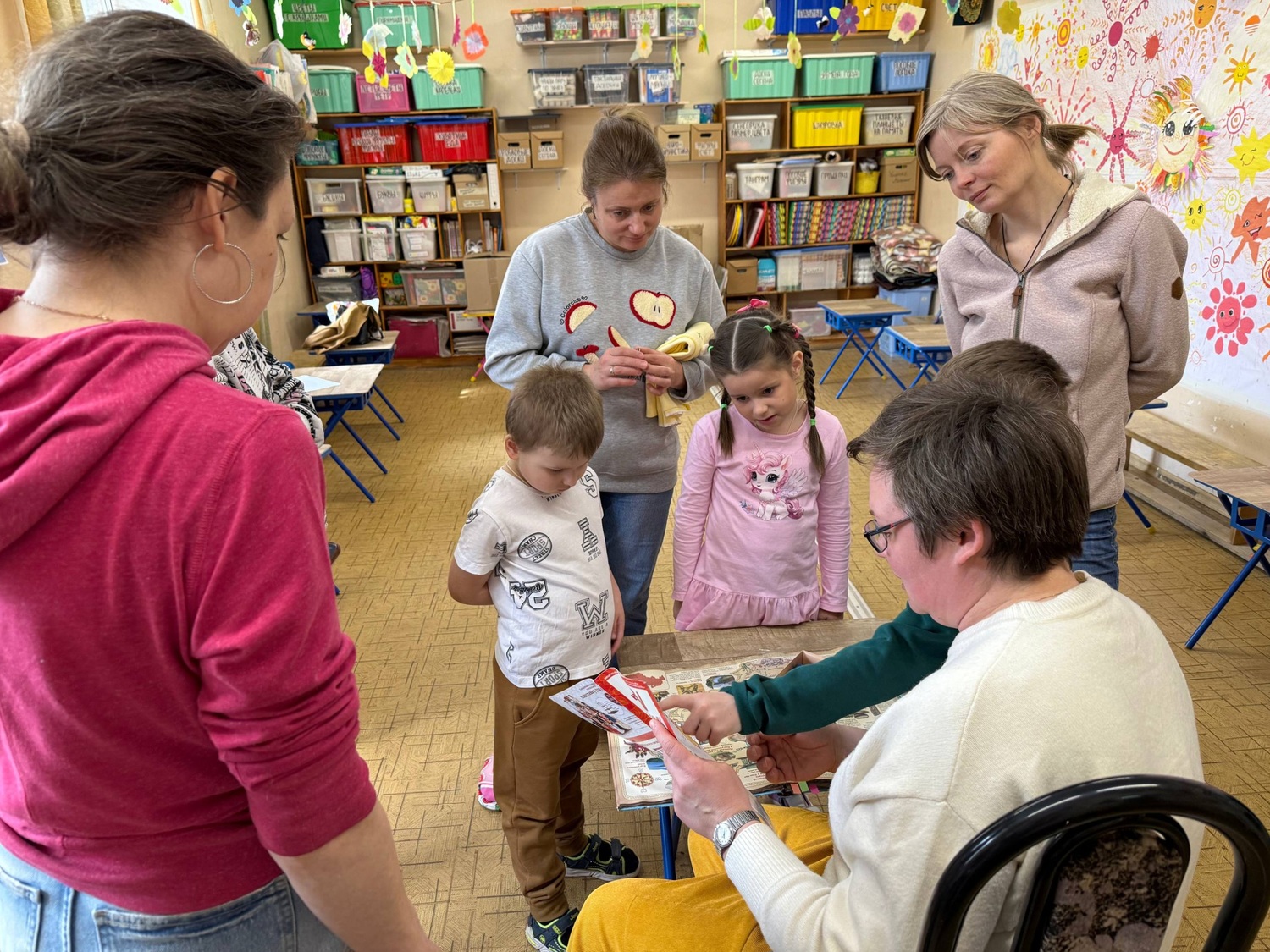 В рамках увлекательной игровой программы дети вместе с родителями смогли познакомиться с картой нашей страны, посмотрели, где какие народы живут, изучили народные костюмы, обсудили традиции и играли в народные игры.