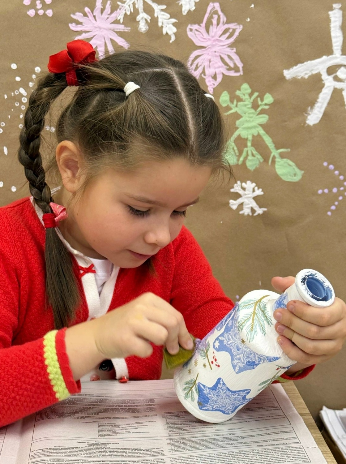 В итоге у ребят получились яркие, нарядные и уникальные вазы, которые могут послужить отличным новогодним декором или подарком.