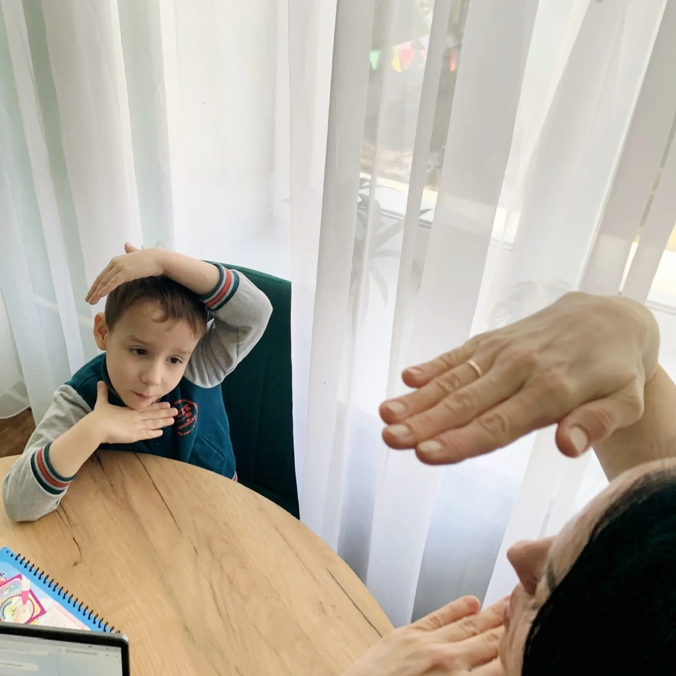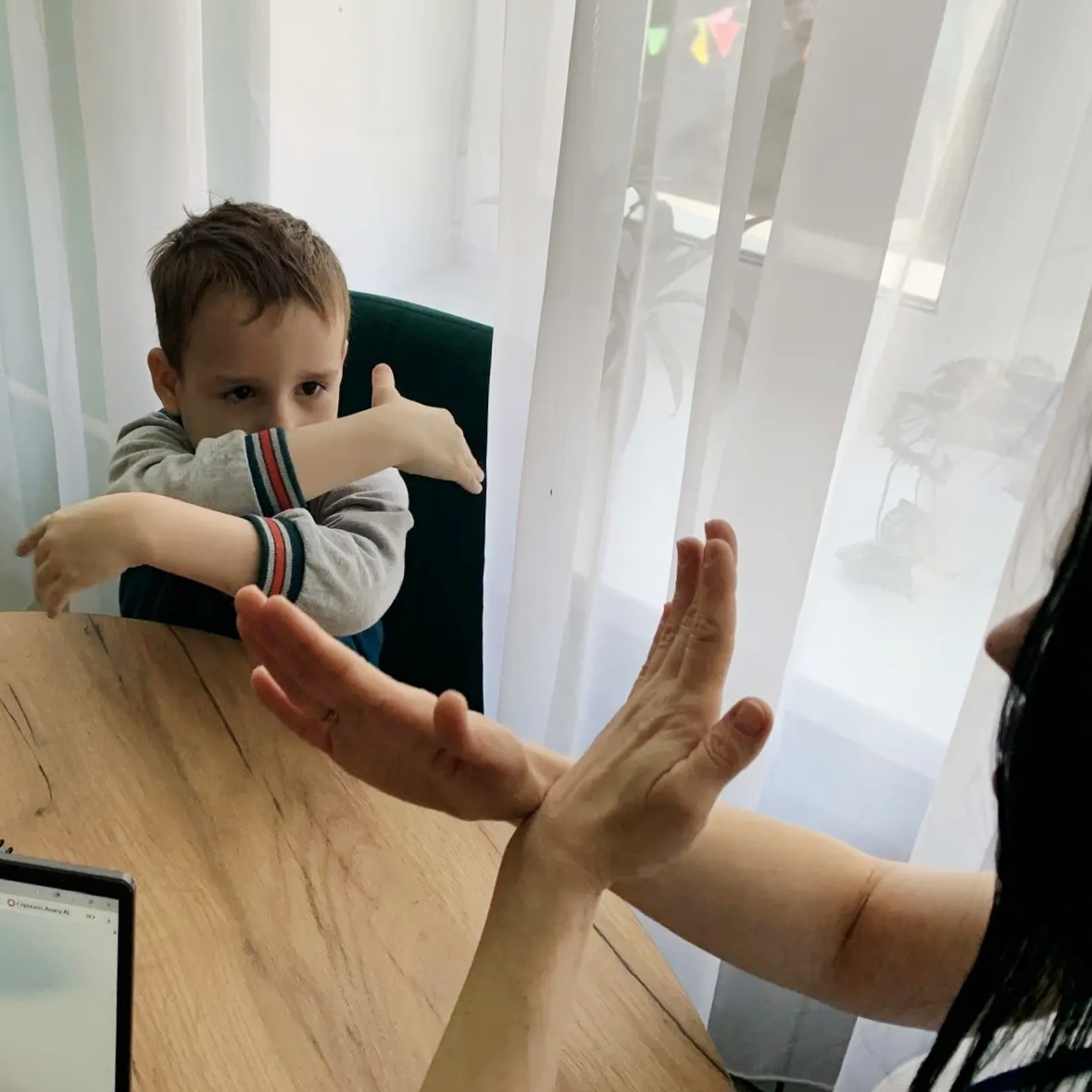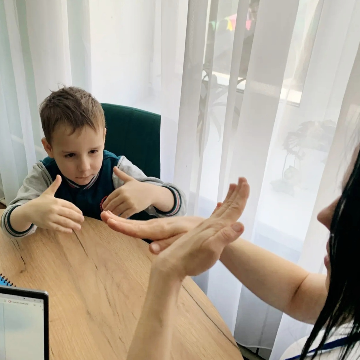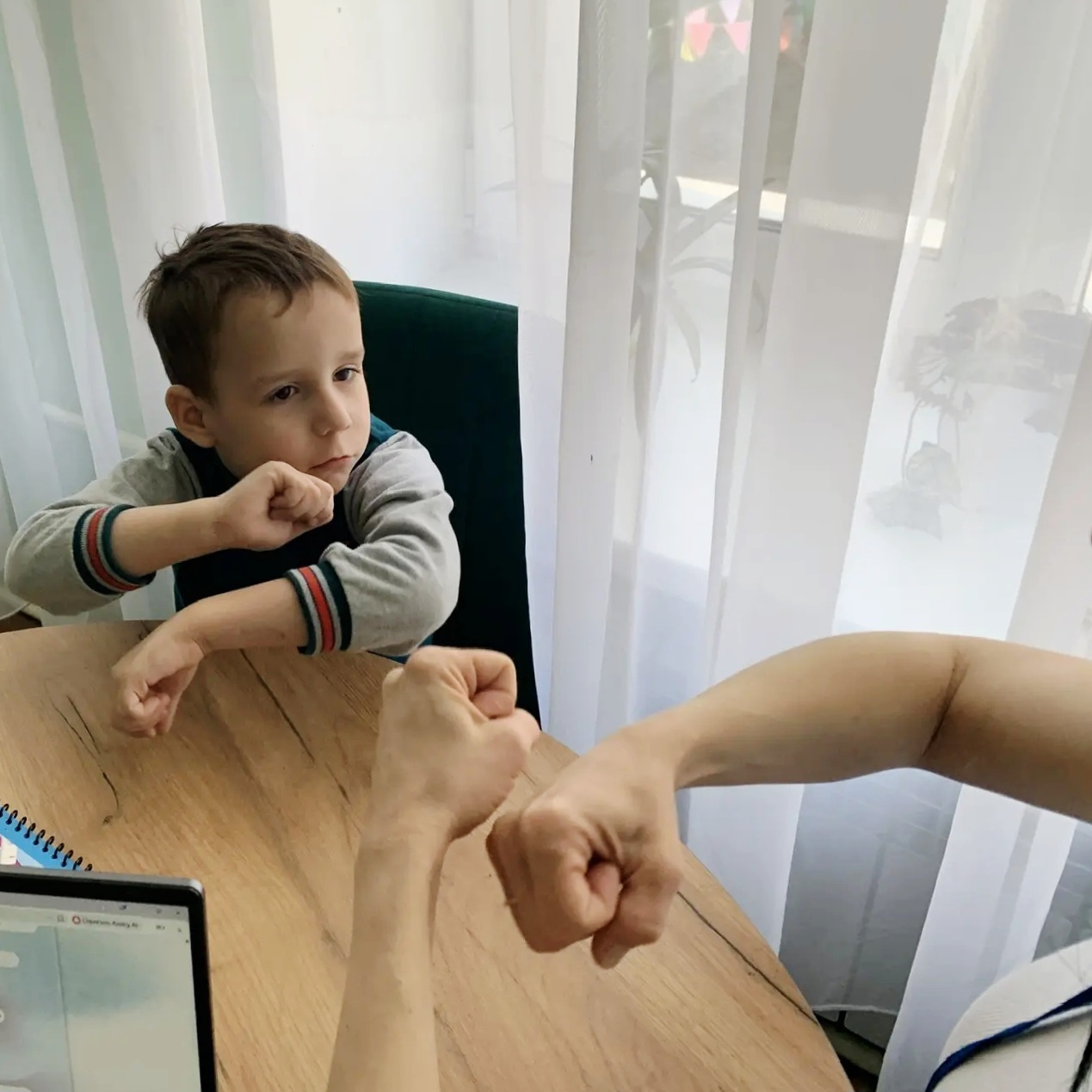 Начали с простых, но эффективных упражнений, таких как поочередные касания пальцев, которые способствуют развитию мелкой моторики и координации движений. С удовольствием выполнили упражнение «кулак-ладошка», перекрестные движения. Использовали элементы самомассажа, звуковой гимнастики.