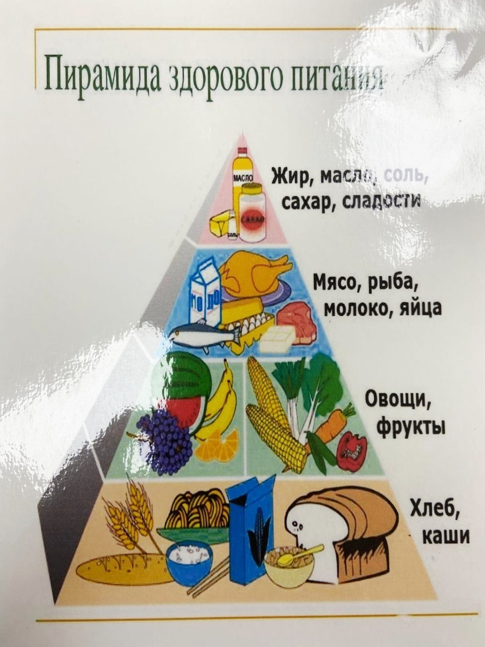 Обсудили основные правила здорового питания. Изучили пирамиду питания. Вспомнили, какие продукты содержат витамины A, B, C, D. Провели анкетирование, сделали вывод, что полноценное питание критически важно для молодого организма, так как оно обеспечивает правильный рост и развитие, формирует здоровье на всю жизнь и предотвращает заболевания, влияет на самочувствие и внешний вид.