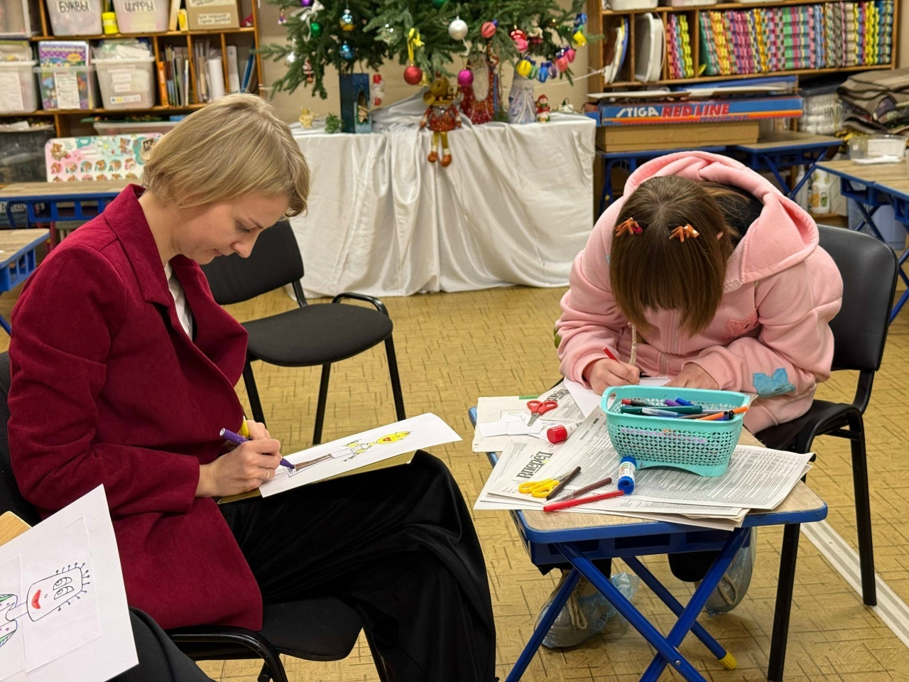 Гости играли с детьми в настольные игры, провели мастер-класс, на котором учили изготавливать слайм и новогодние украшения 🪩 Каждый смог проявить свою креативность. Волонтеры также помогли ребятам дописать письма Деду Морозу.