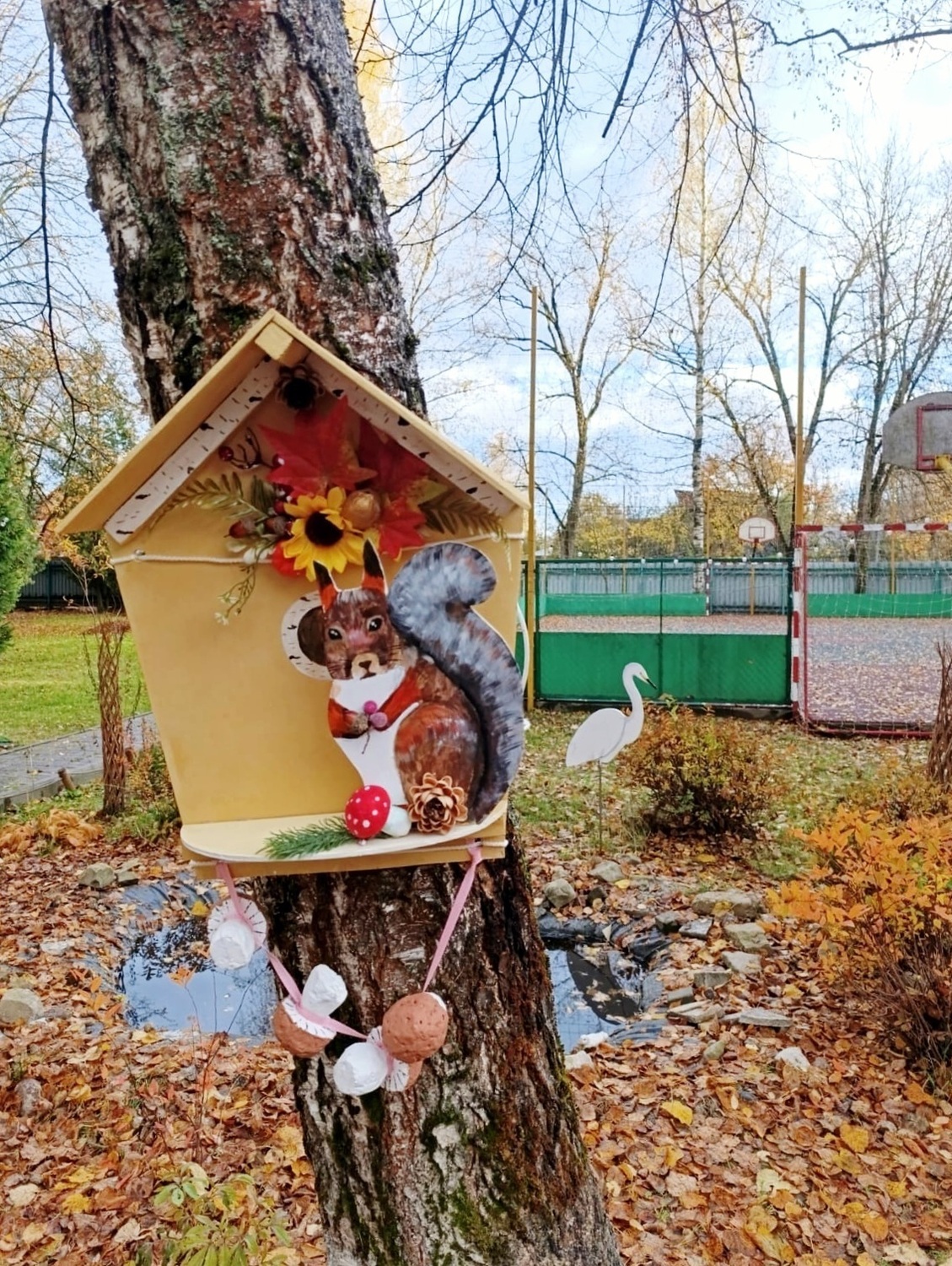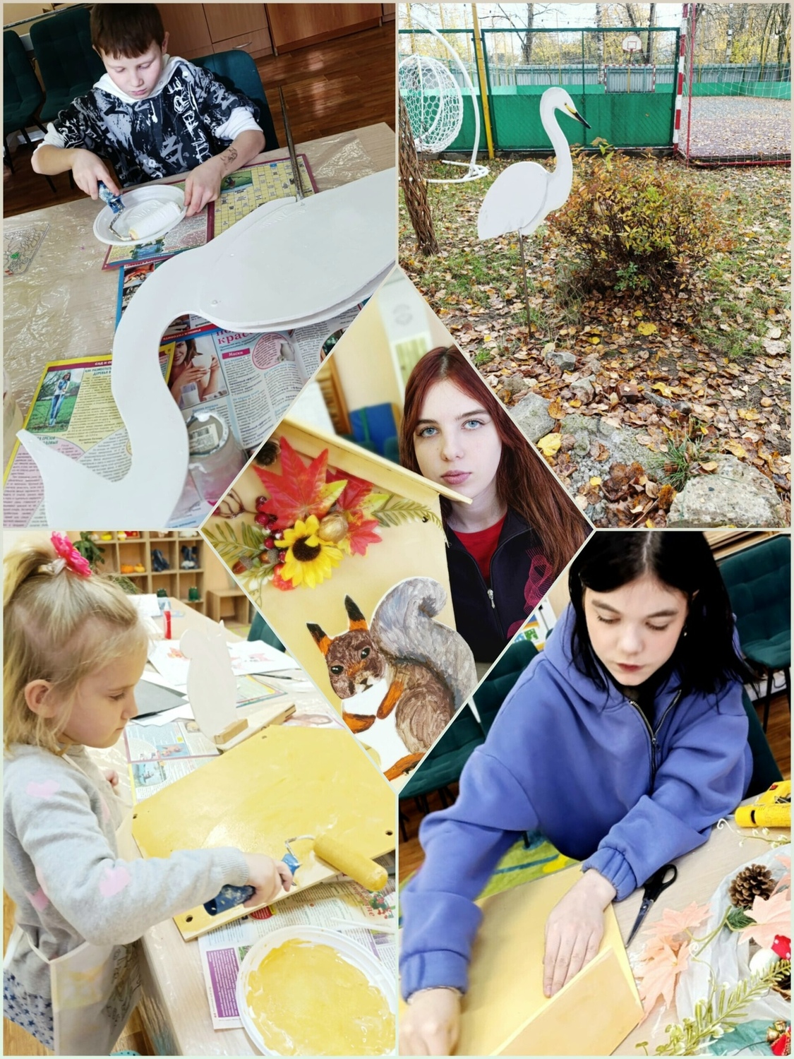 В рамках занятия по декоративно-прикладному искусству ребята создали своими руками декор из фанеры – «Домик для белочки» и «Цапля». Эти работы украсили территорию учреждения, добавив ей сказочной атмосферы.