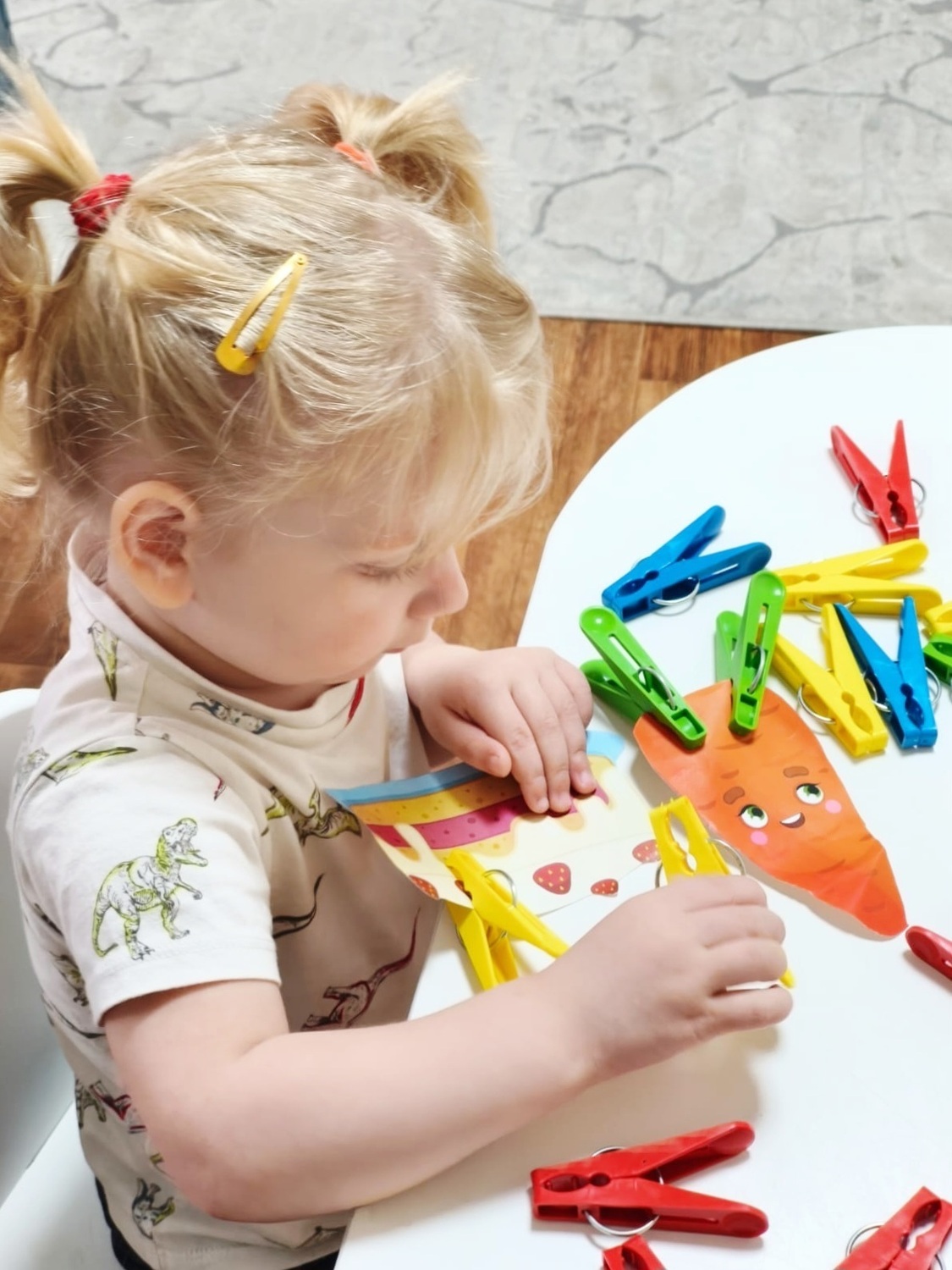 - ️ Игра «Пластилиновые заплатки» – учились "заклеивать" пластилином соответствующего цвета круглые отверстия.