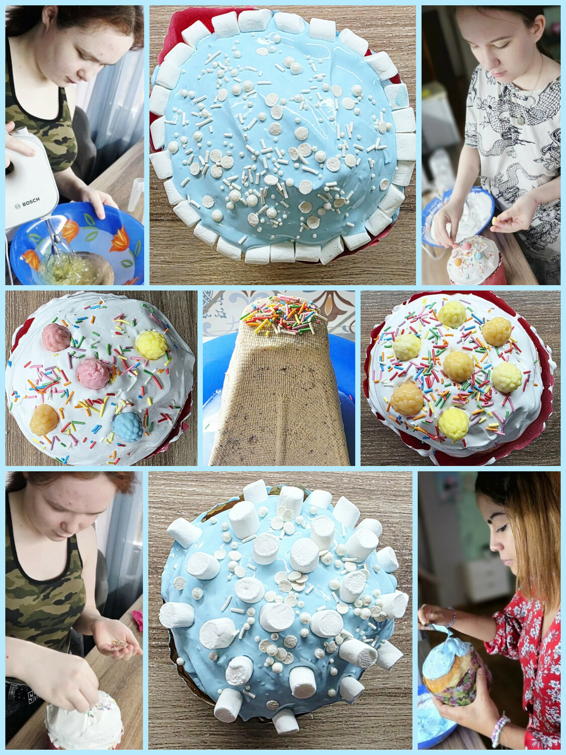Они покрасили яйца и приготовили белковую глазурь, которой покрыли куличи. Девочки украсили цветной стружкой по своему желанию куличи и творожную пасху, что позволило каждой проявить свою фантазию. Кроме того, была приготовлена ещё одна творожная пасха, которая также станет украшением праздничного стола!