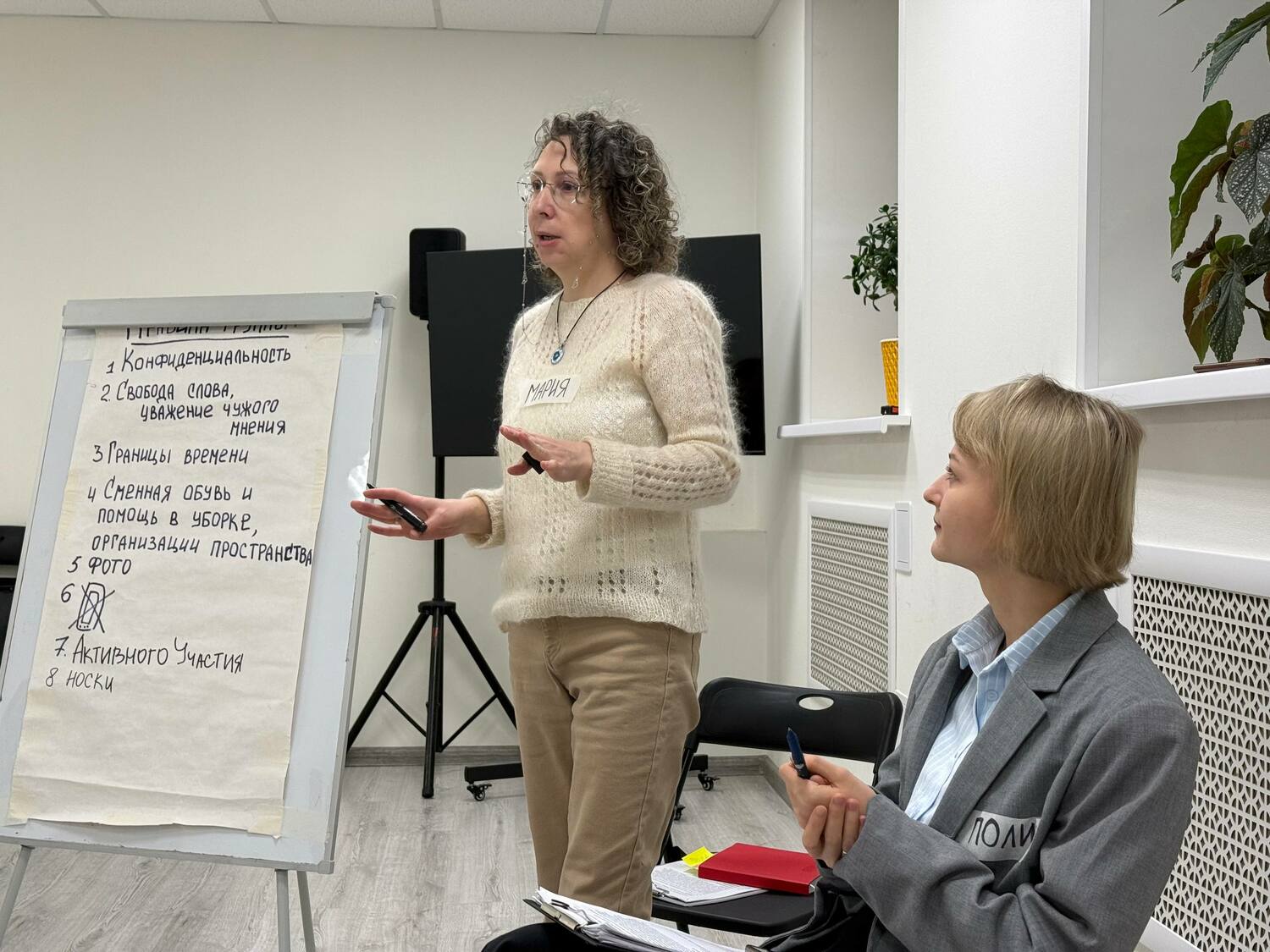 Состоялась первая встреча нашего тренинга: мы активно знакомились, обсуждали правила группы, разбирались что такое «тренинг» и «психологический», для чего нужна работа с телом и как это связано с психикой.