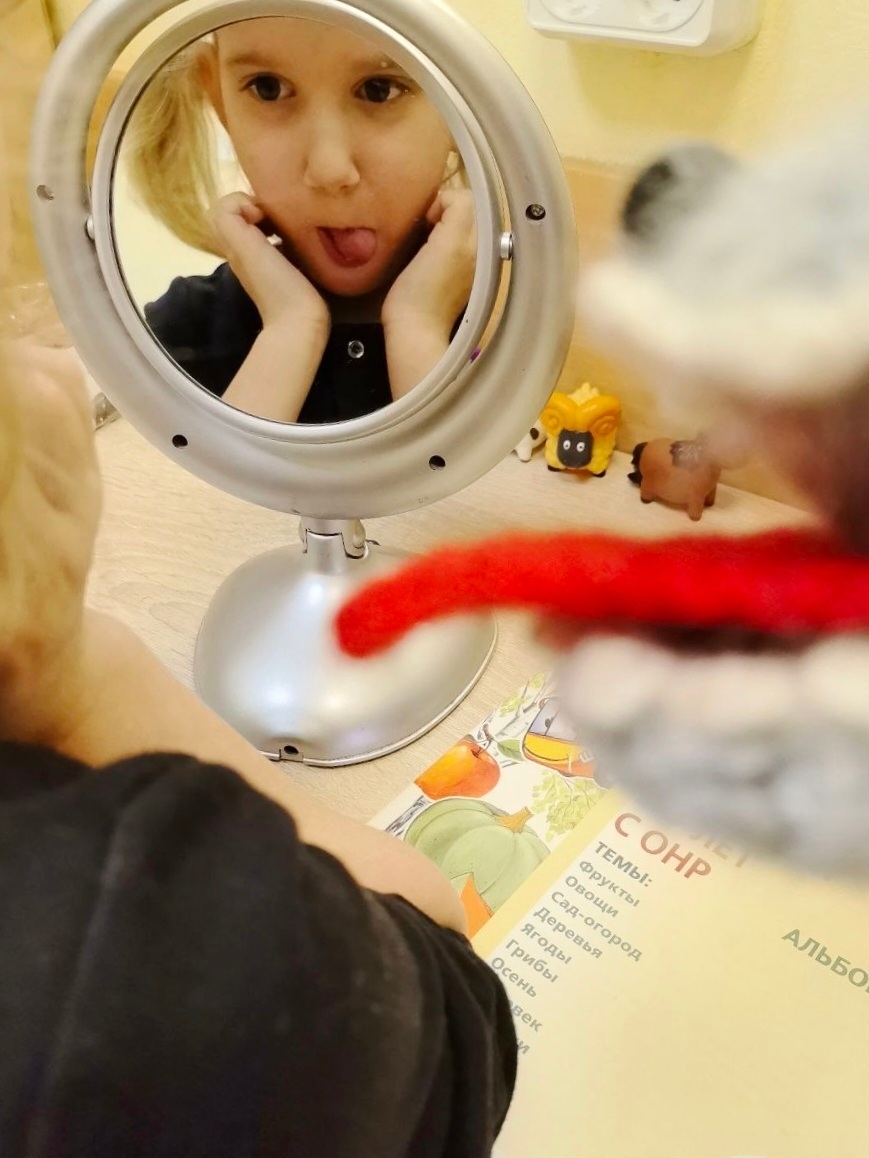 - артикуляционная гимнастика перед зеркалом с собачкой Боней добавила ярких эмоций и смеха;