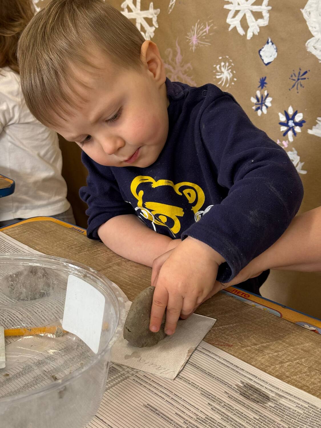 Мы вместе прошли все этапы: рвали яичные лотки, замачивали их горячей водой, отжимали, замешивали массу с подсолнечным маслом, клеем и крахмалом, а затем мастерили чудесных рыбок и лошадок!