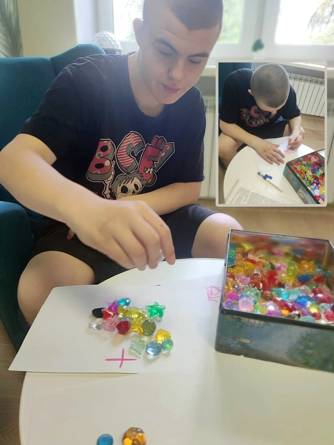 В ходе занятий использовалась песочная терапия, которая способствует улучшению эмоционального состояния детей, помогая им выразить свои чувства и переживания в безопасной и творческой атмосфере. С помощью настольных игр и упражнений сортировали фигурки, развивая логическое мышление и координацию движений.