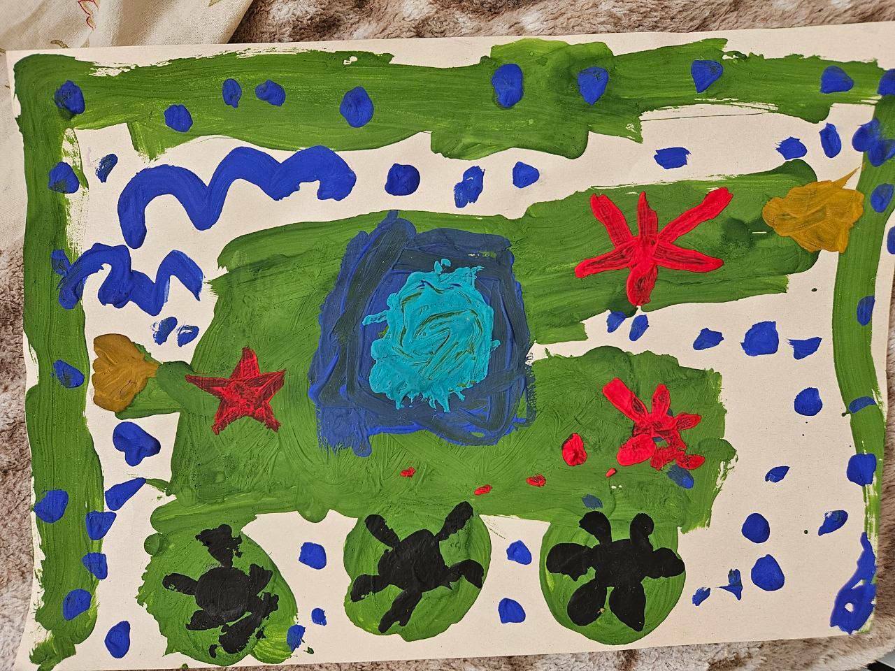 В ходе занятия подростки создавали абстрактные изображения, нанося краски на гладкую поверхность и делая с неё отпечаток. Затем каждый старался увидеть в получившемся узоре какой-либо образ, который при желании можно было дополнить и проработать кистью.